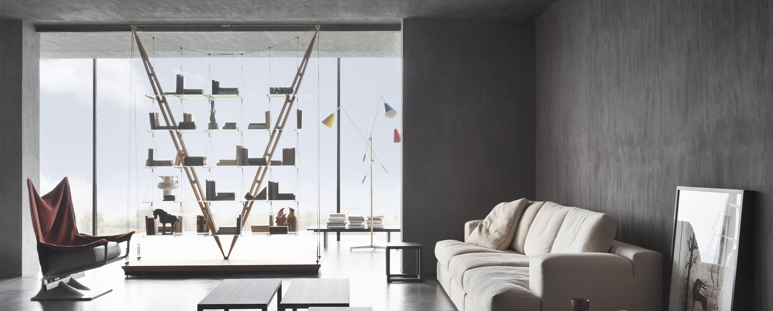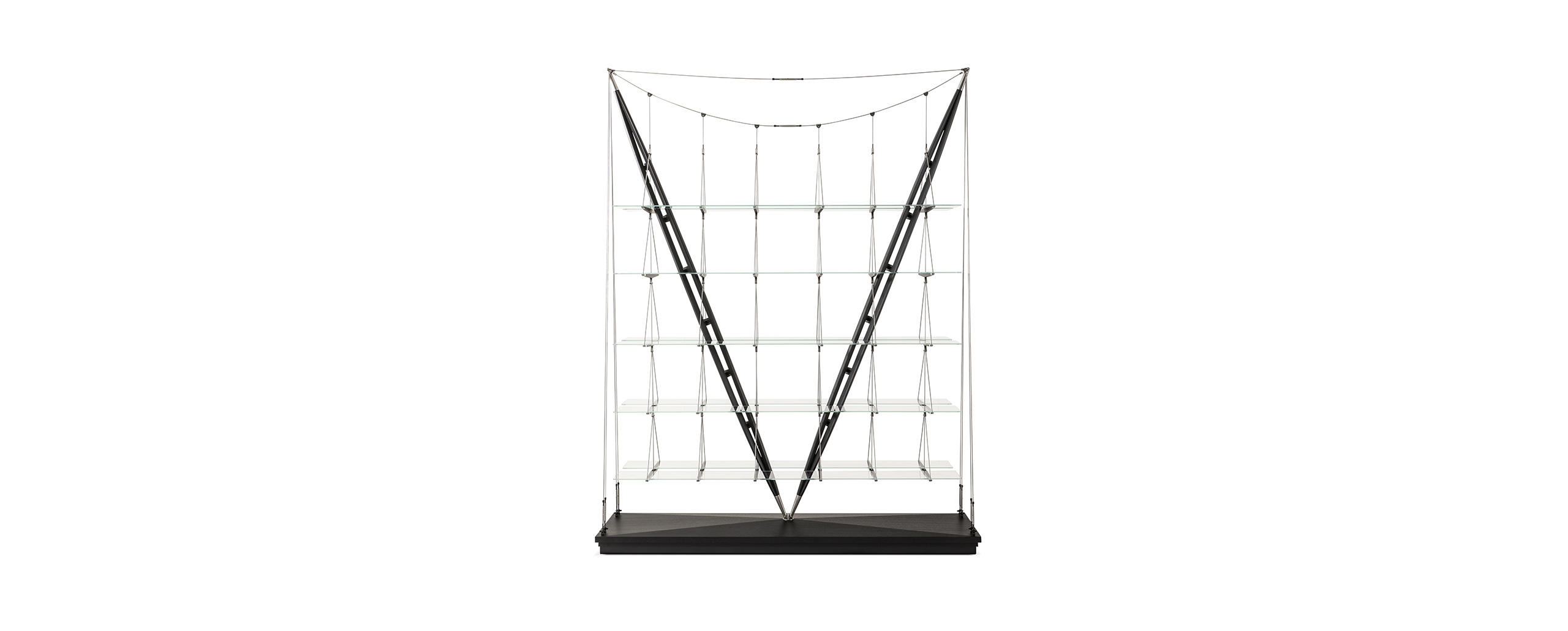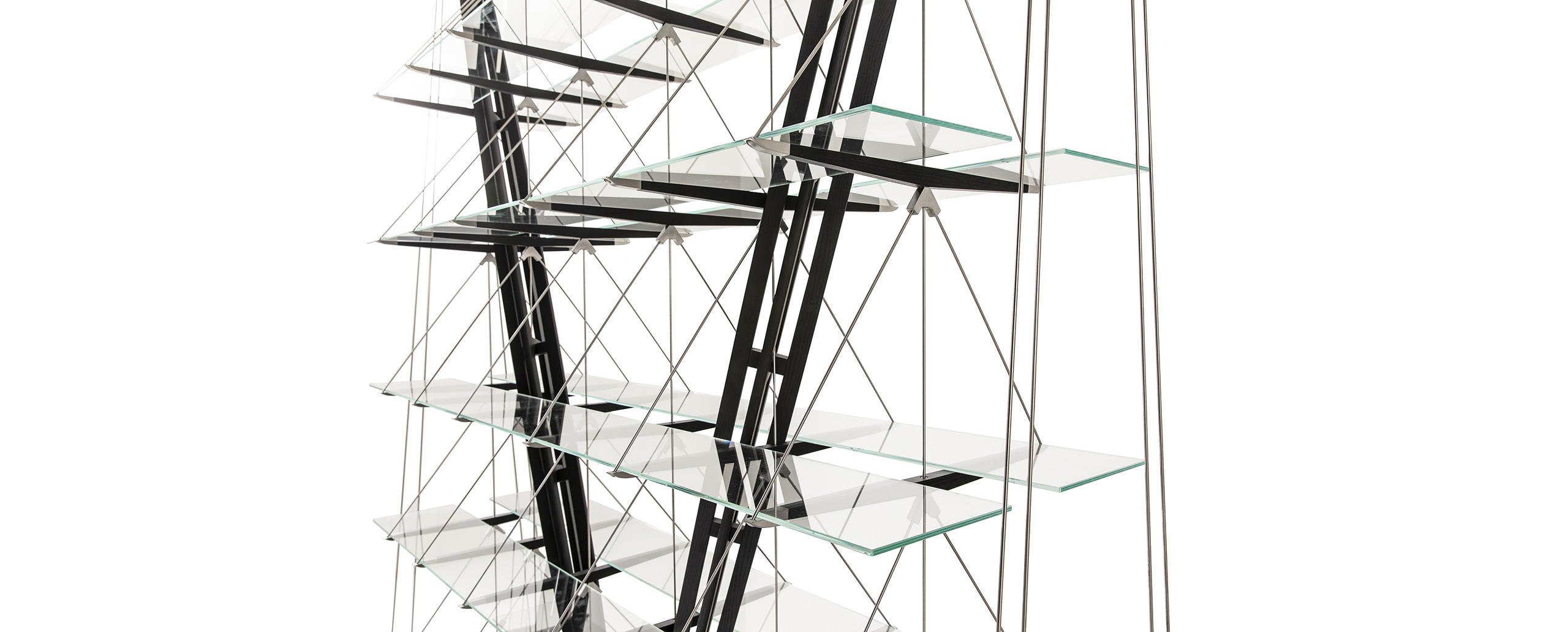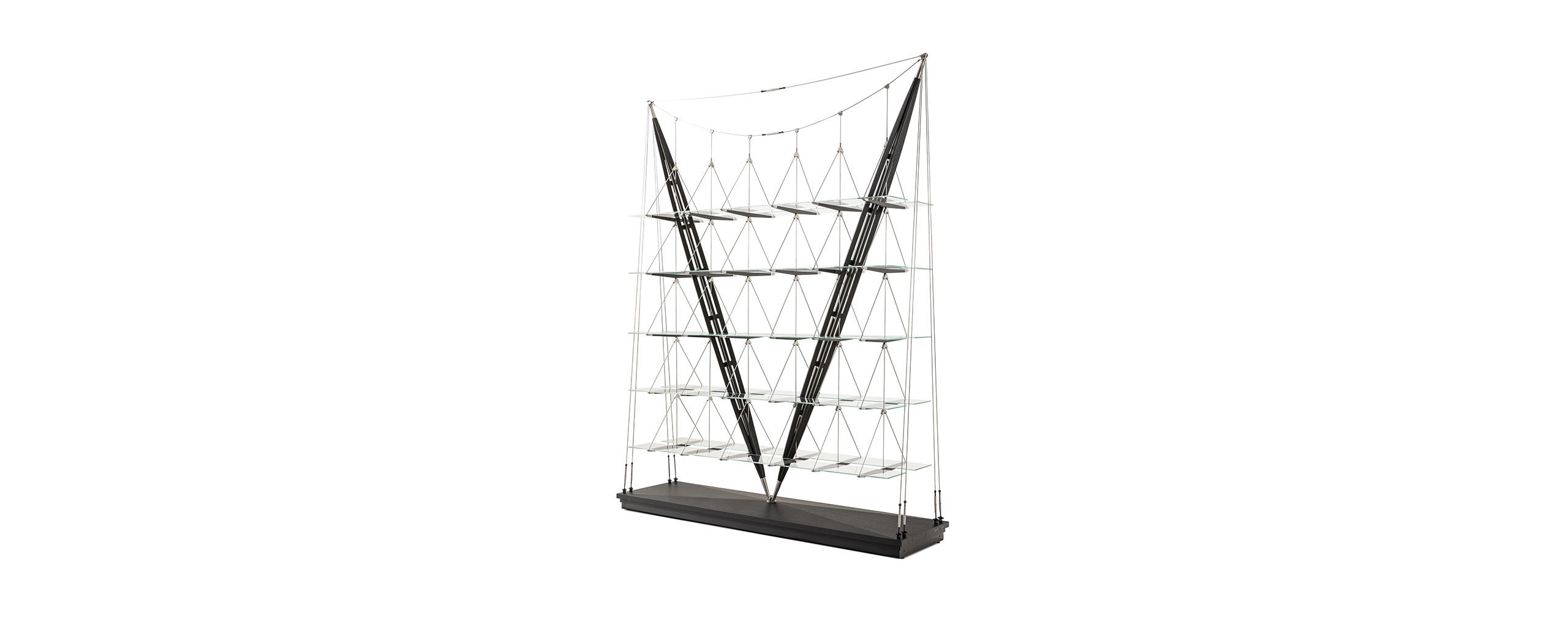 Defying the laws of physics, going beyond what we normally understand by the conditions of equilibrium, this bookcase is nothing short of a manifesto for Cassina’s design and construction capabilities. After a lengthy period of research and development, ably assisted by state-of-the-art technology, the company’s designers created a production prototype of the original 1940 piece that architect Franco Albini made as a one-off for his Milan home. Respecting the authentic underlying concept of the design, with its compelling experimental feel, as well as its surprisingly spare, linear looks, today’s model preserves the minimal ideal of the original: a feeling of air and light so that the books and objets seem to float free. Thus does Cassina restore to the contemporary world of design one of its most emblematic artefacts, a piece that has acquired the status of a work of art, as magical now as it was when it was first seen. It is now also available in an exclusive limited edition in ashwood stained black with stainless steel metallic caps and elements.