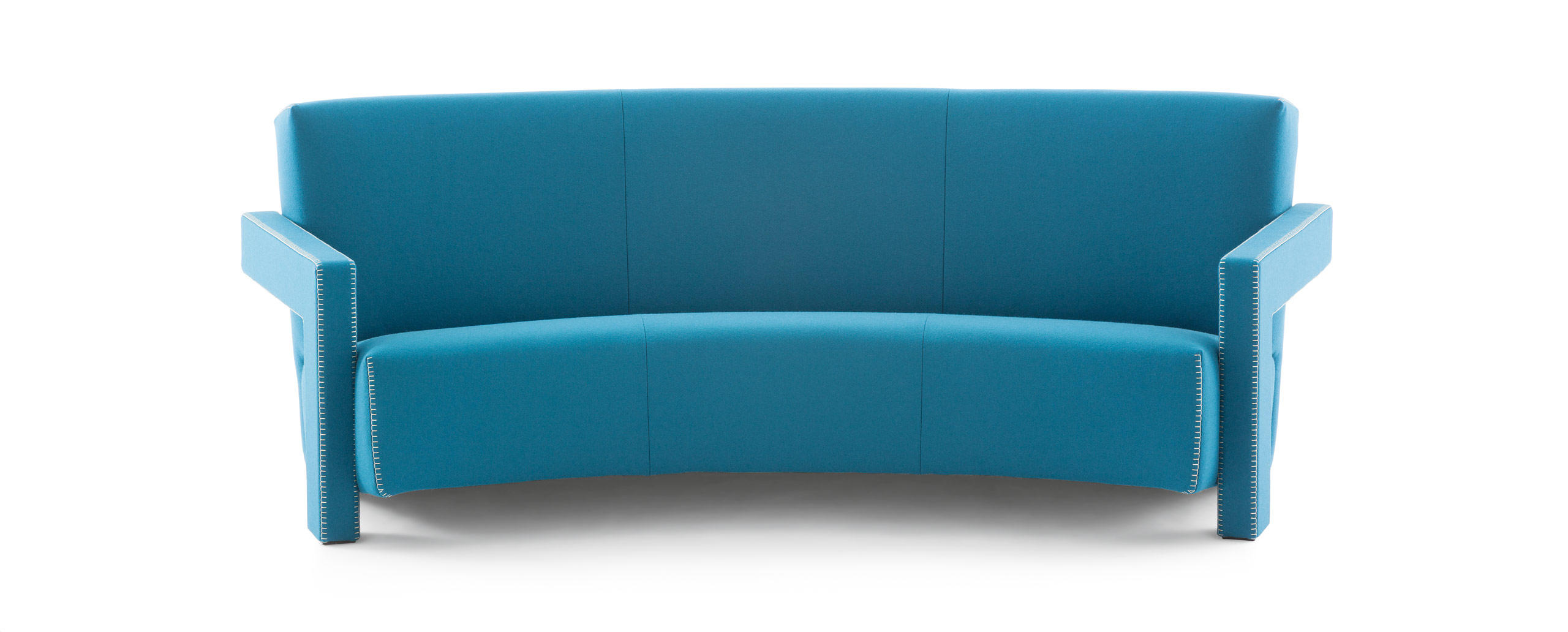 Изогнутый диван, прямые или трехместные диваны со стальной несущей рамой. Утеплитель из пенополиуретана и полиэстера. Тканевая обивка с белой тонкой строчкой. Кожаная обивка доступна для прямых диванов. Ножки из черного пластика.