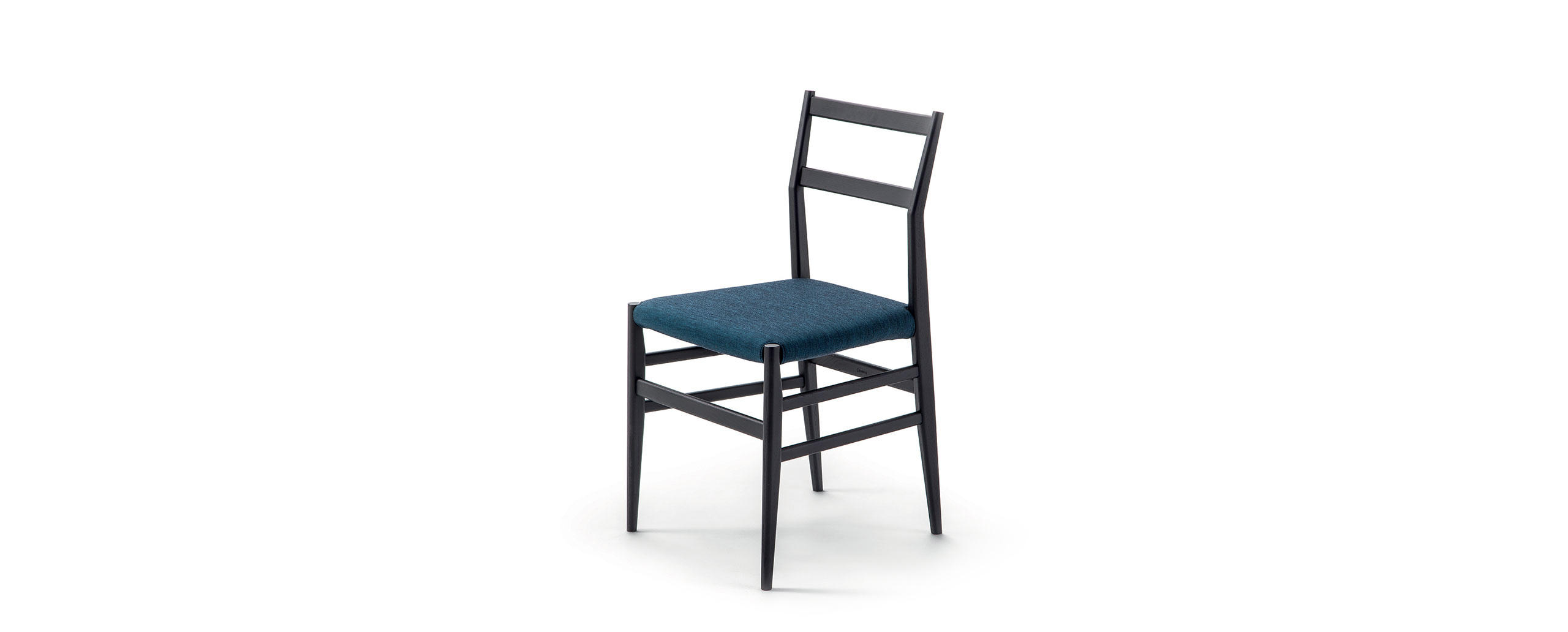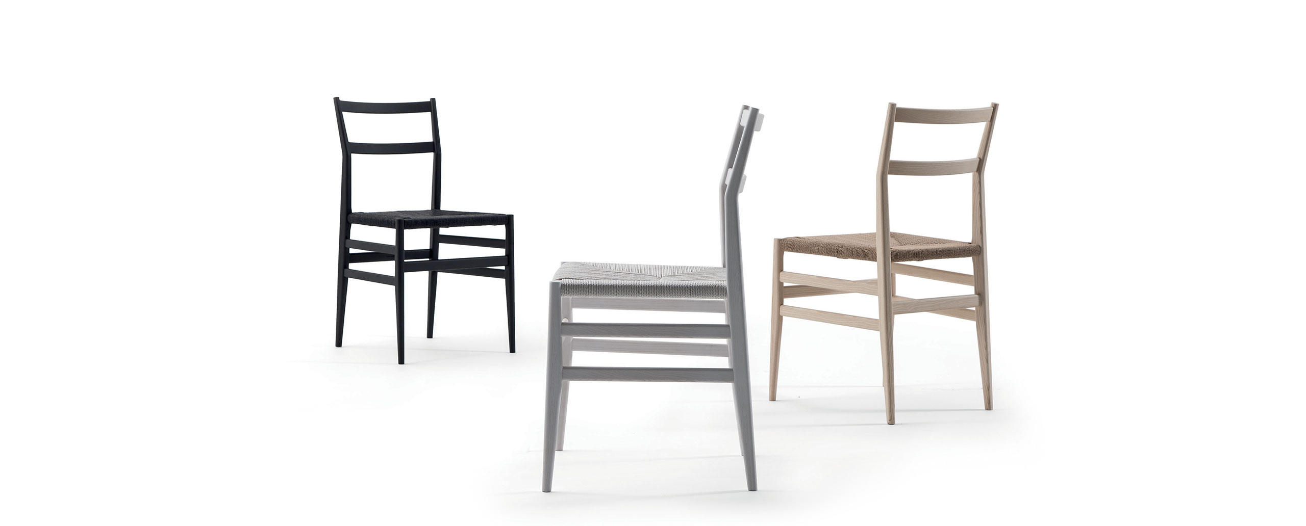 An icon of design and what has been dubbed MedaMade crafts mastery, the Leggera – its lines clean-cut refined, and versatile – adapts effortlessly to a variety of requirements and settings. It is now available in the normal version as well as in the one with armrests. A wood chair, par excellence, the Leggera marks one of the key points of the relationship, both in terms of design and production, which started in the 1950s between Gio Ponti, Cesare Cassina, and the Cassina company’s artisans. The experience and the crafts capabilities of Cassina’s carpenters were put to the test in addressing the challenge of lightening the chair frame – the ultimate outcome being the inimitable slimline Superleggera chair – concentrating on its essential lines while respecting its resistance and stability. The many combinations and contrasts in colour between the ashwood frame and the seat-cover keep the Leggera constantly up-to-date, as well as making it a perfect partner for any setting.