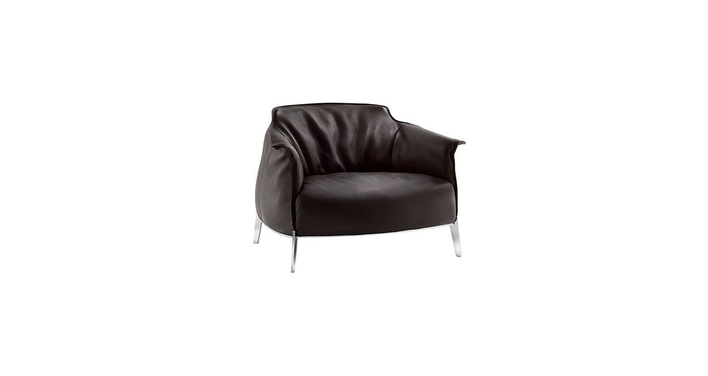 Jean-Marie Massaud adds a surplus of softness to the Archibald collection: the Archibald Gran Comfort armchair. The central element is the large, soft seat cushion. A luxurious leather casing with rich goose down padding that creates a refined contrast with the minimal architectural cut of the steel frame that houses it.
