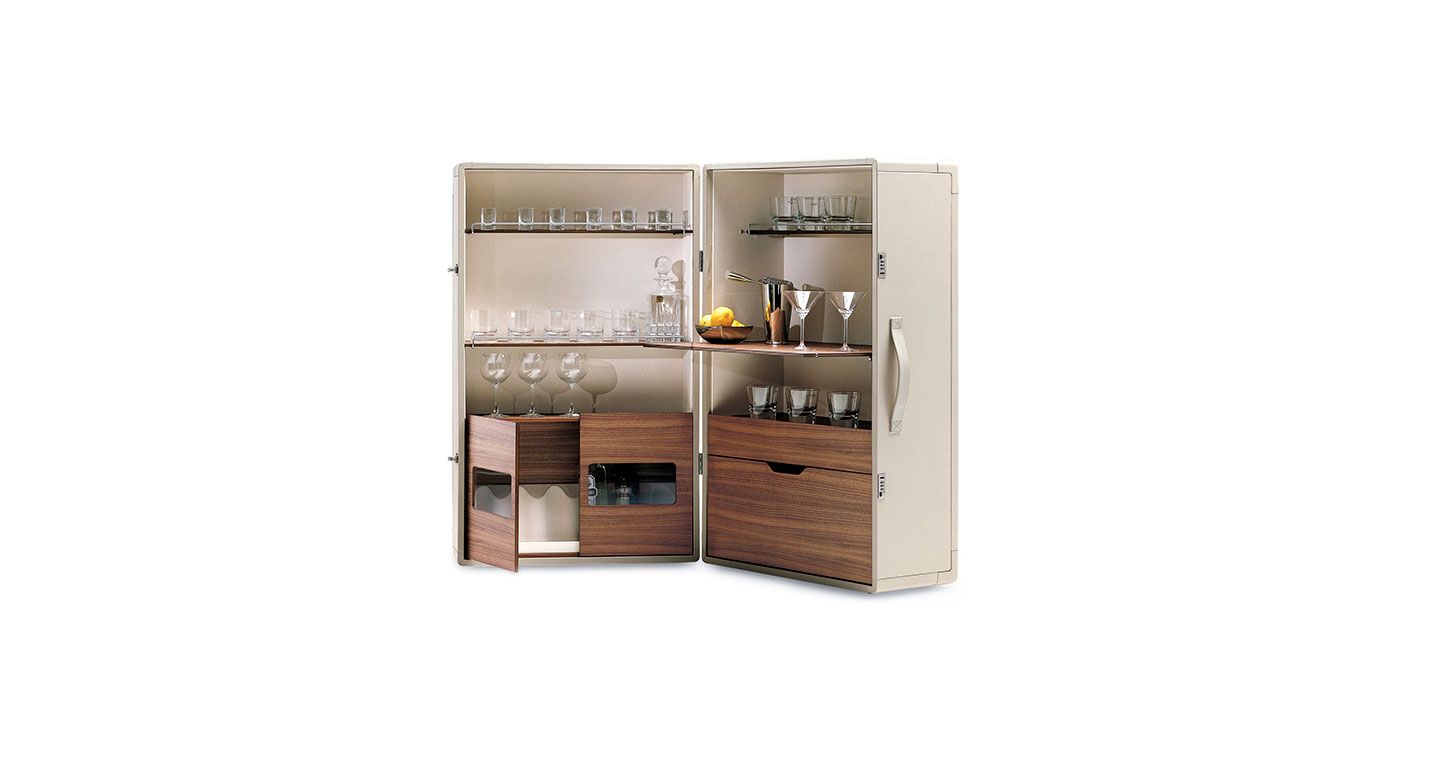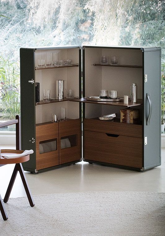 With the Isidoro mobile bar, cocktail hour returns to the home with a personal and convivial feel. A retro element given a contemporary makeover by Jean-Marie Massaud. Isidoro is an elegant cabinet on wheels that opens like a book.