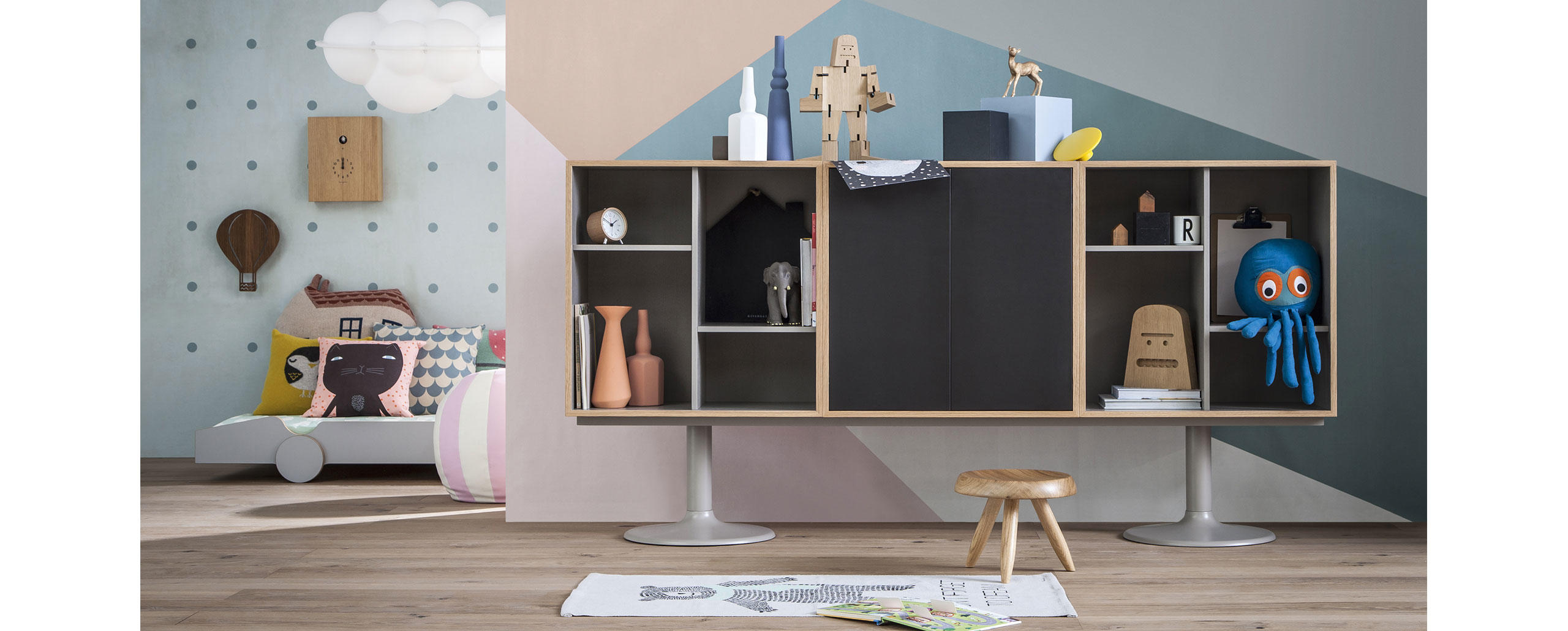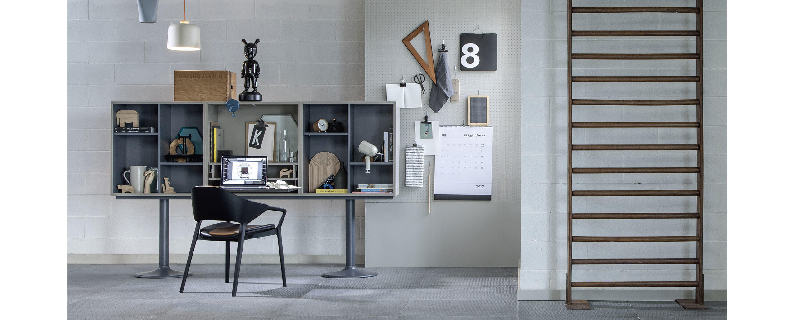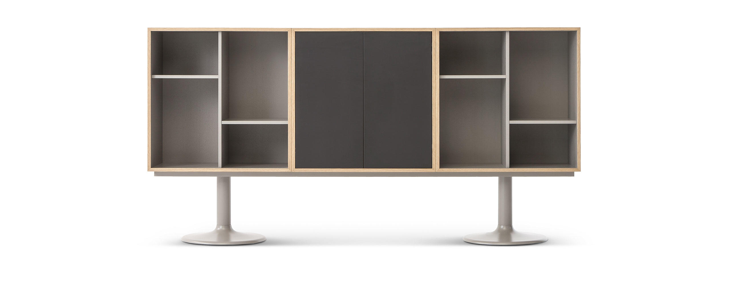 Adapté par Charlotte Perriand en 1984 These historic storage units, in the collection since 1978, are relaunched with a new look emphasising the features that make this unique furniture with its timeless design versatile, functional and perfect for the organisation of space.The units come in 18 fixed compositions, in two- and three-module versions and in three different types: with open compartments, with two hinged doors or with lover folding door.The wide range of colours—for the bases, external and internal parts of the modules and the doors—makes interesting, elegant solutions possible.