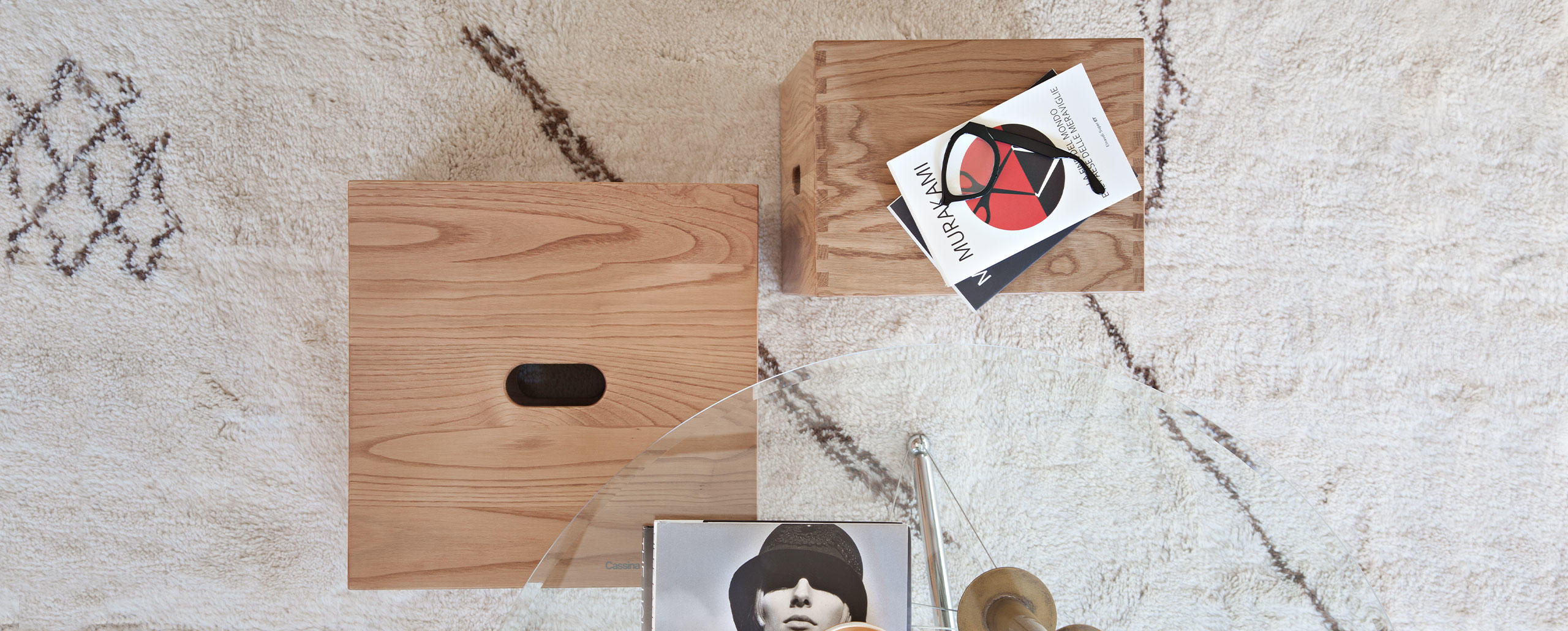 LC14 01 Tabouret stool CabanonDesigned in 1952 for the Cabanon, a hut built by Le Corbusier on the French Riviera, where alongside the many fi xed furnishings, the furniture was all conceived as boxes.This stool is Spartan and yet at the same time sophisticated due to its dovetail joints that highlight the connections between the solid wood surfaces.The oblong hole on each side makes Tabouret very easy to handle.Made in natural-coloured solid chestnut wood. LC14 02 Tabouret stool Maison du BrésilDesigned by Le Corbusier in 1959 for the Maison du Brésil at the Cité International Universitaire de Paris.The oblong openings on the two main sides make it easy to move the stool, which can be positioned either horizontally or vertically.The exclusive system of dovetail joints on the corners shows off the precision and skill of Cassina in working solid wood.