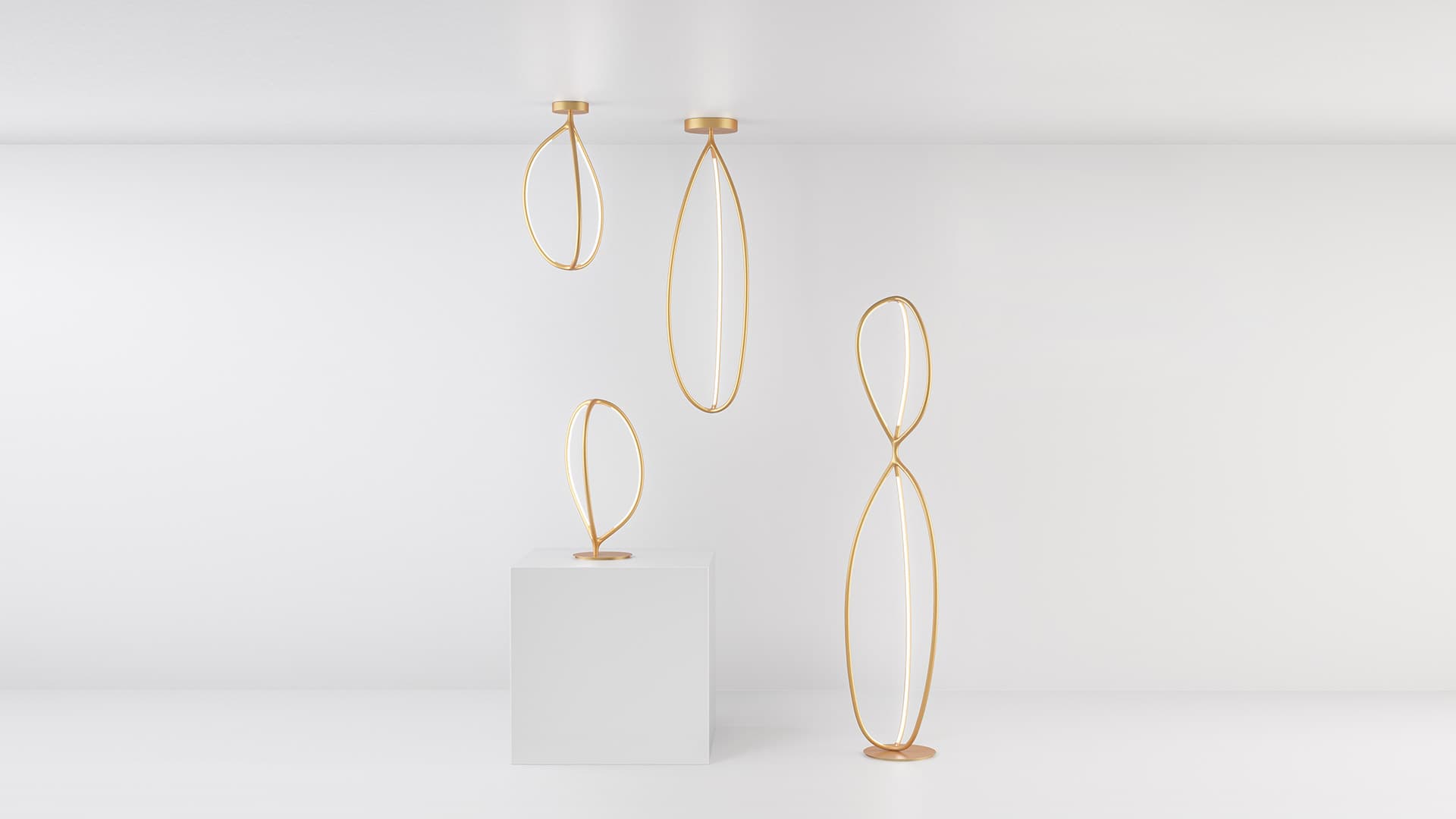 Arrival is a complete lamp family with dynamic, flowing shapes that sculpt light with delicate, graphic lines.Branching out from a central joint, common to all the different versions, each model has three arms that form a soft, organic geometric shape through a profile that is both light and structure. Each element has a section that leaves the aluminium profile visible from the outside while generating a light-diffusing surface inside.The resulting elements blend into spaces with a presence that is discreet yet distinctive thanks to the shape and quality of the softly diffused light.These are elegant lighting tools, perfect for use in multiple series or for combining the different versions together depending on the requirements of the installation spaces.