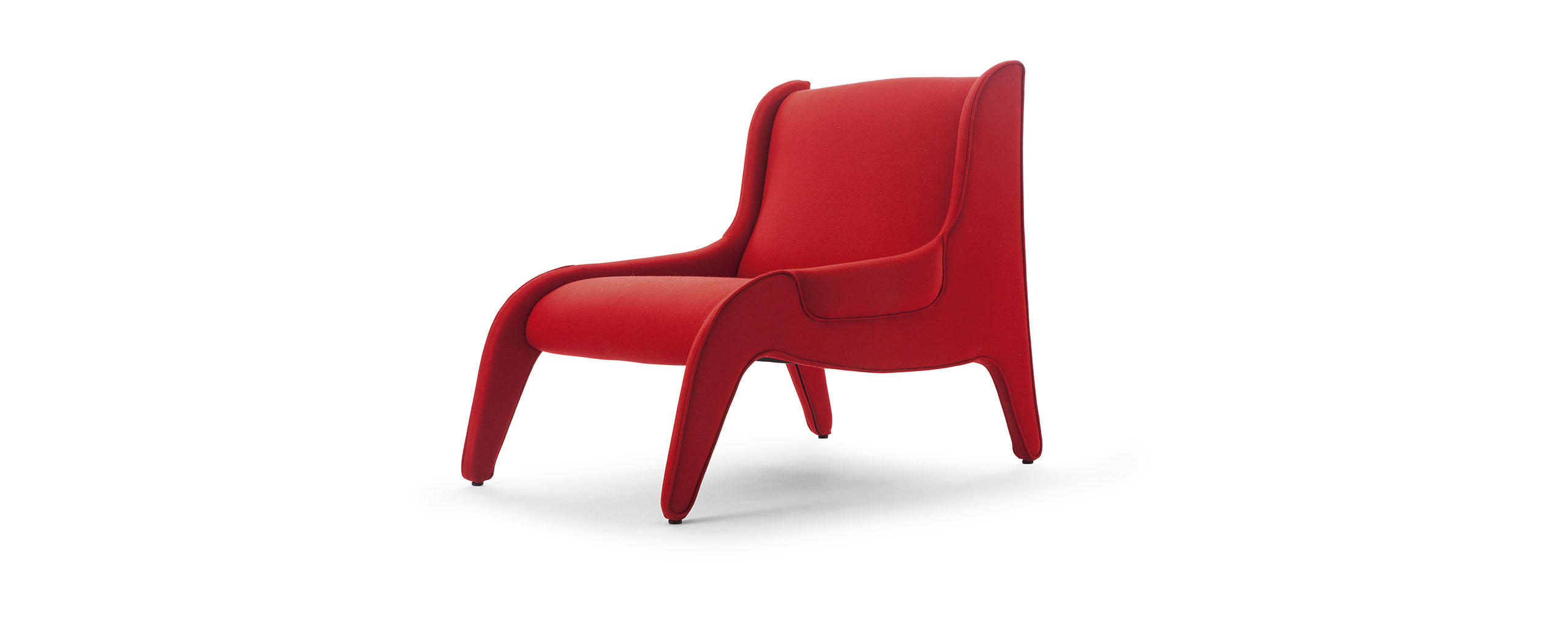 Armchair, designed by Marco Zanuso for Arflex, with a wide and comfortable seat. Internal steel frame with elastic straps. Padding in CFCfree polyurethane foam and polyester wadding. The side panels also act as armrests. Non-removable fabric or leather upholstery.Black plastic feet. The armchair is also available in an iconic edition featuring red cloth upholstery.At the end of the 1940s The Skin of Our Teeth (La Famiglia Antropus) by Thornton Wilder, was one of the first comedies performed at the Piccolo Teatro in Milan, for which Zanuso was commissioned to design the scenery and furnishings.These included an armchair for which he used new materials with which he had been experimenting and that he christened the Antropus.