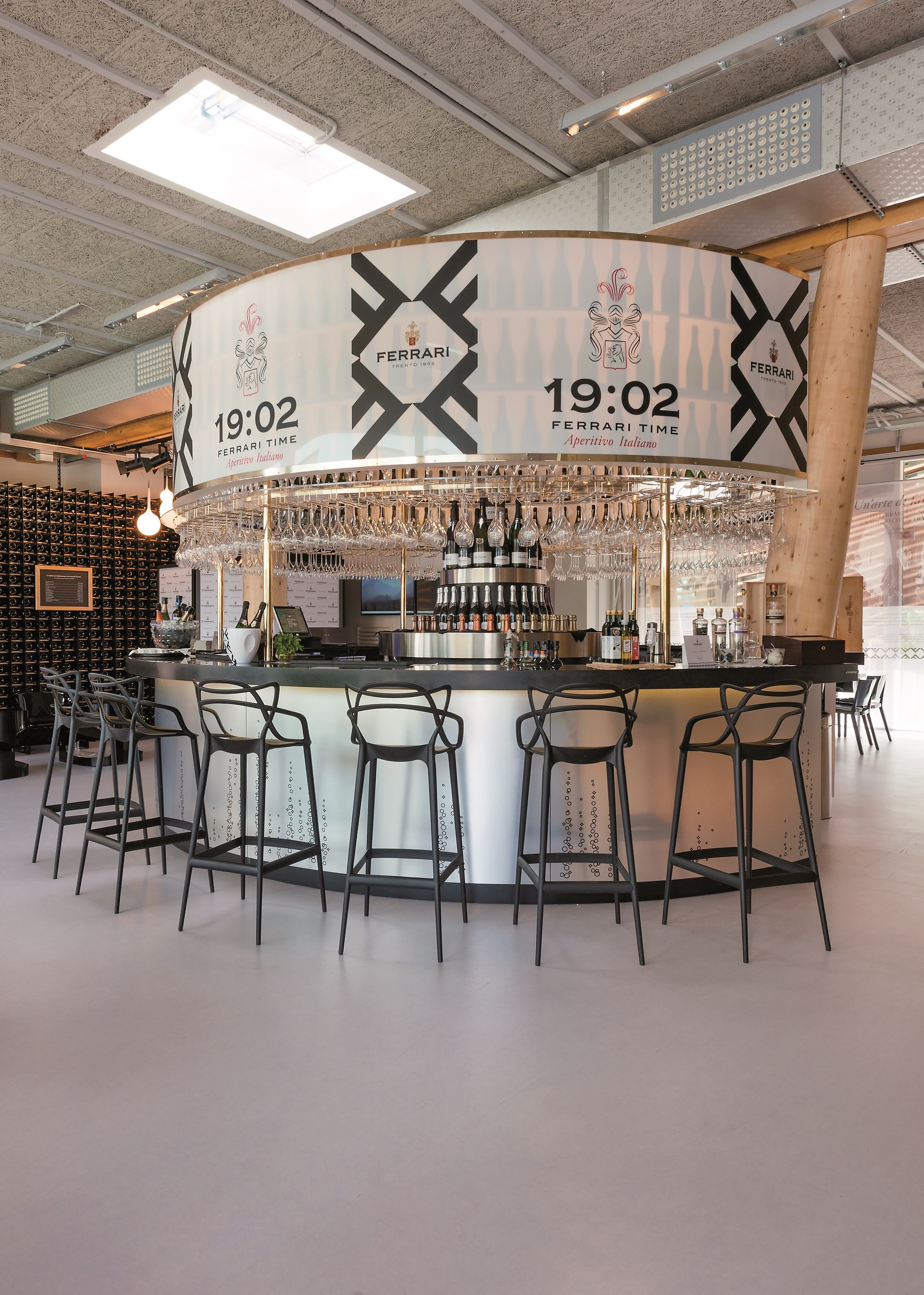 In the stool version of the Masters chair, the legs lengthen and the seat becomes more compact, but the unmistakable graphic style of the structure, created by interweaving the silhouettes of three iconic chairs, remains the same. Ideal for both domestic