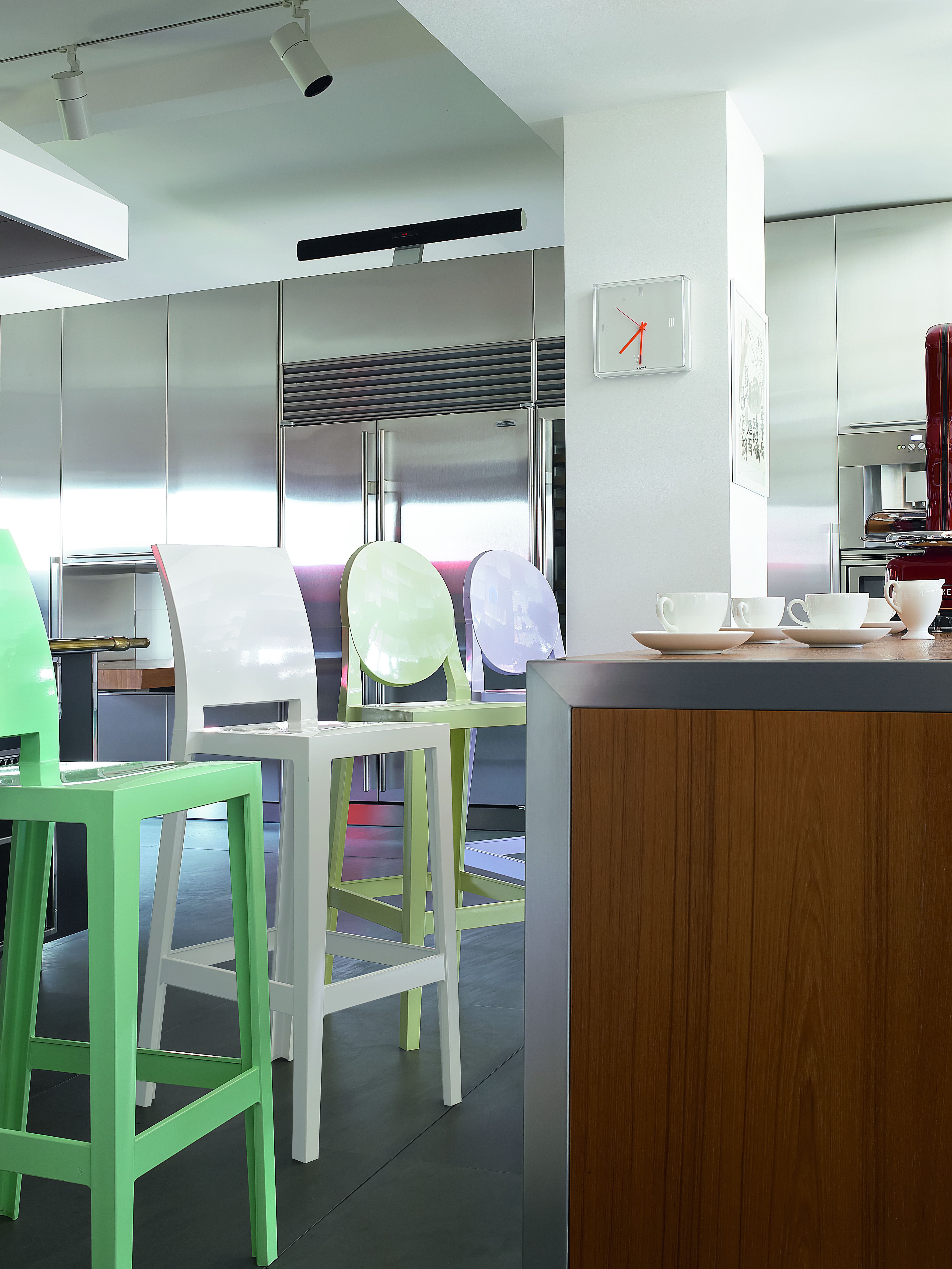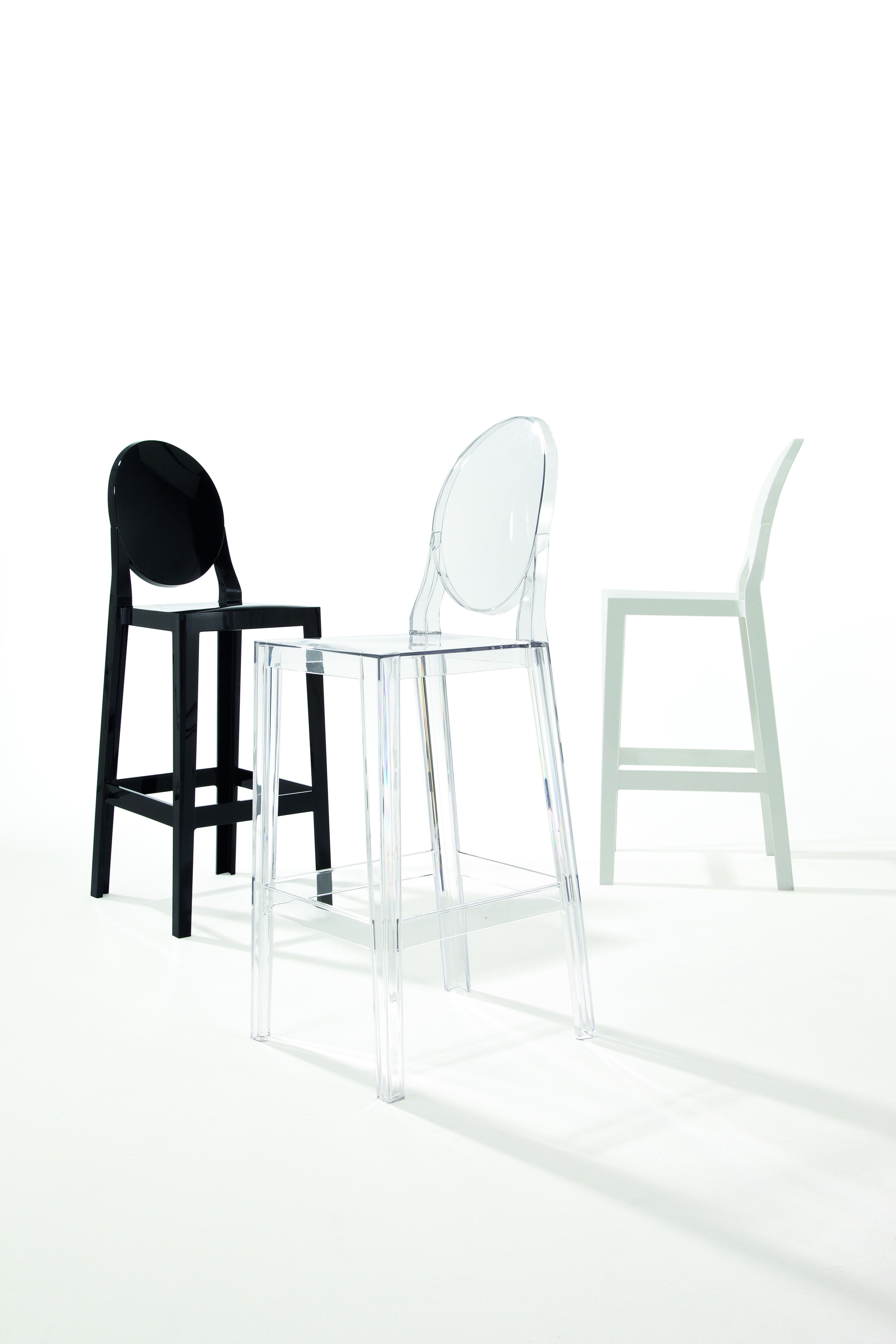 Еще один, и еще один, пожалуйста, табуреты семейства «Призрак», доступные в двух разных высотах - 65 см и 75 см, и с двумя разными спинками - овальной или квадратной, подвижной, практичной, красочной и достаточно прочной, чтобы справиться с любой внутренний или контр
