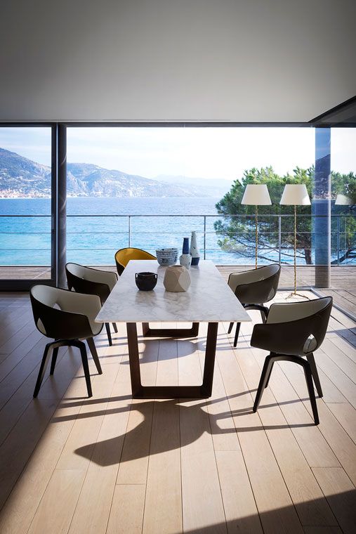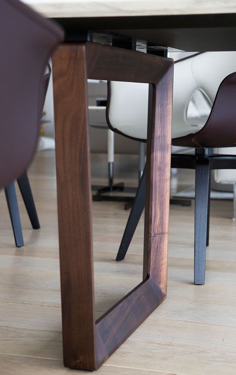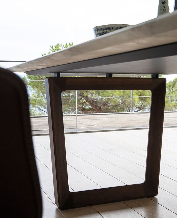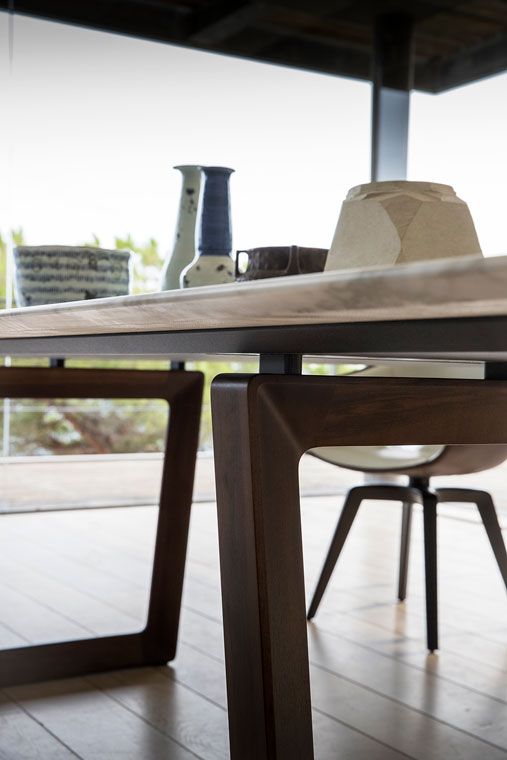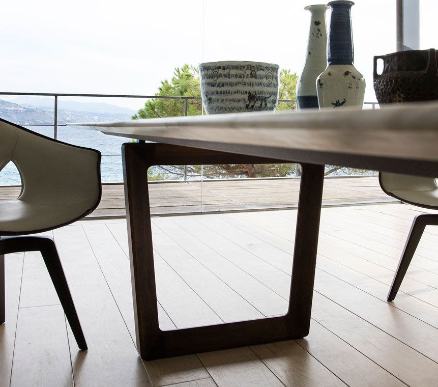 Round or rectangular, the Bolero table has a sleek and elegant design that enhances the material beauty of its elements. The solid wood of the structure meets a table top with large wood tiles that create horizontal and vertical veins that are different every time.