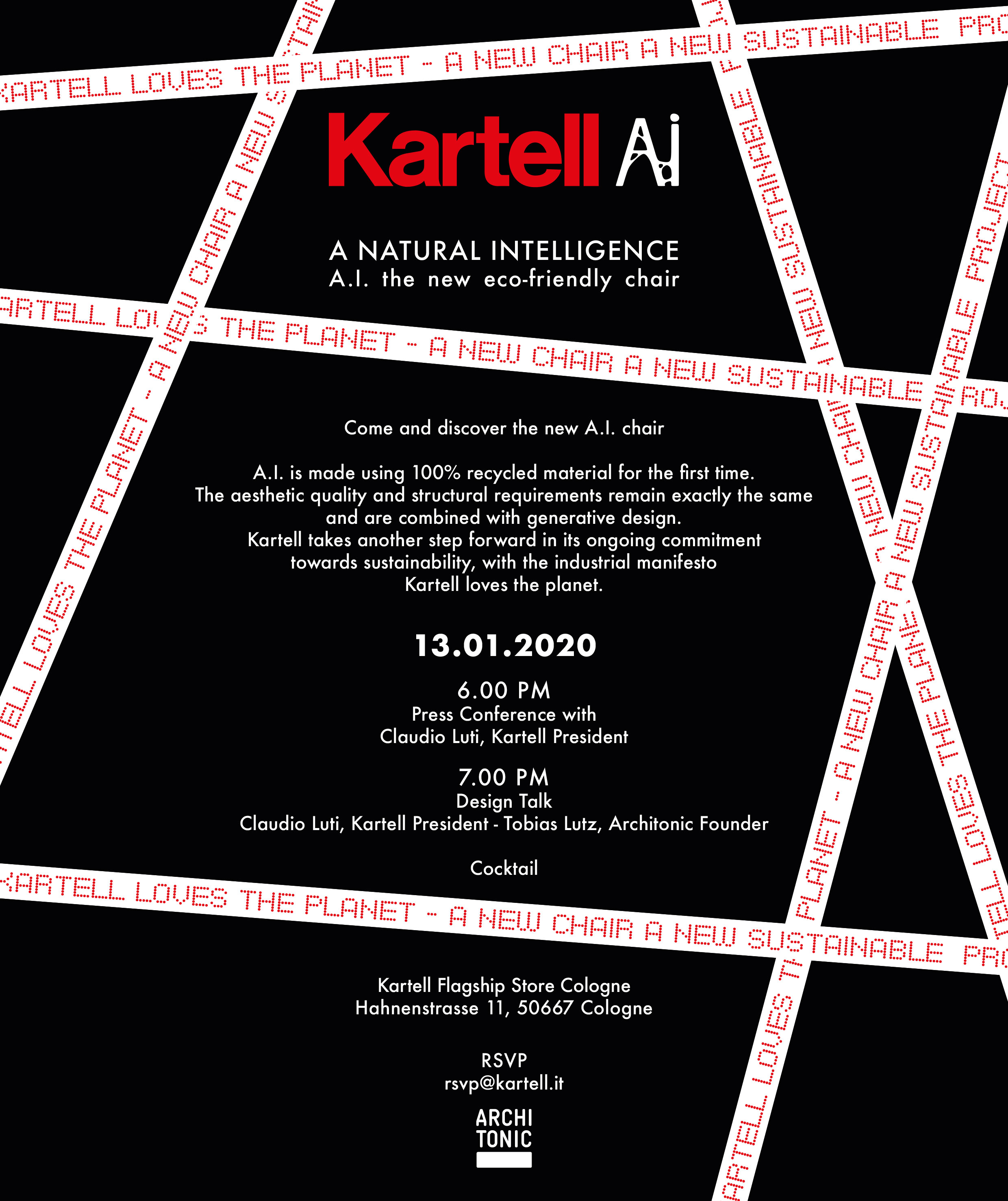 Внимание! 13 января в 19:00 коктейль-вечеринка во флагманском шоуруме Kartell по адресу Hahnenstrasse, 11.