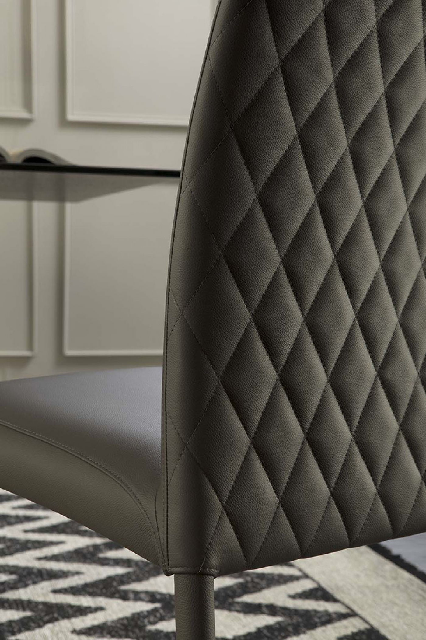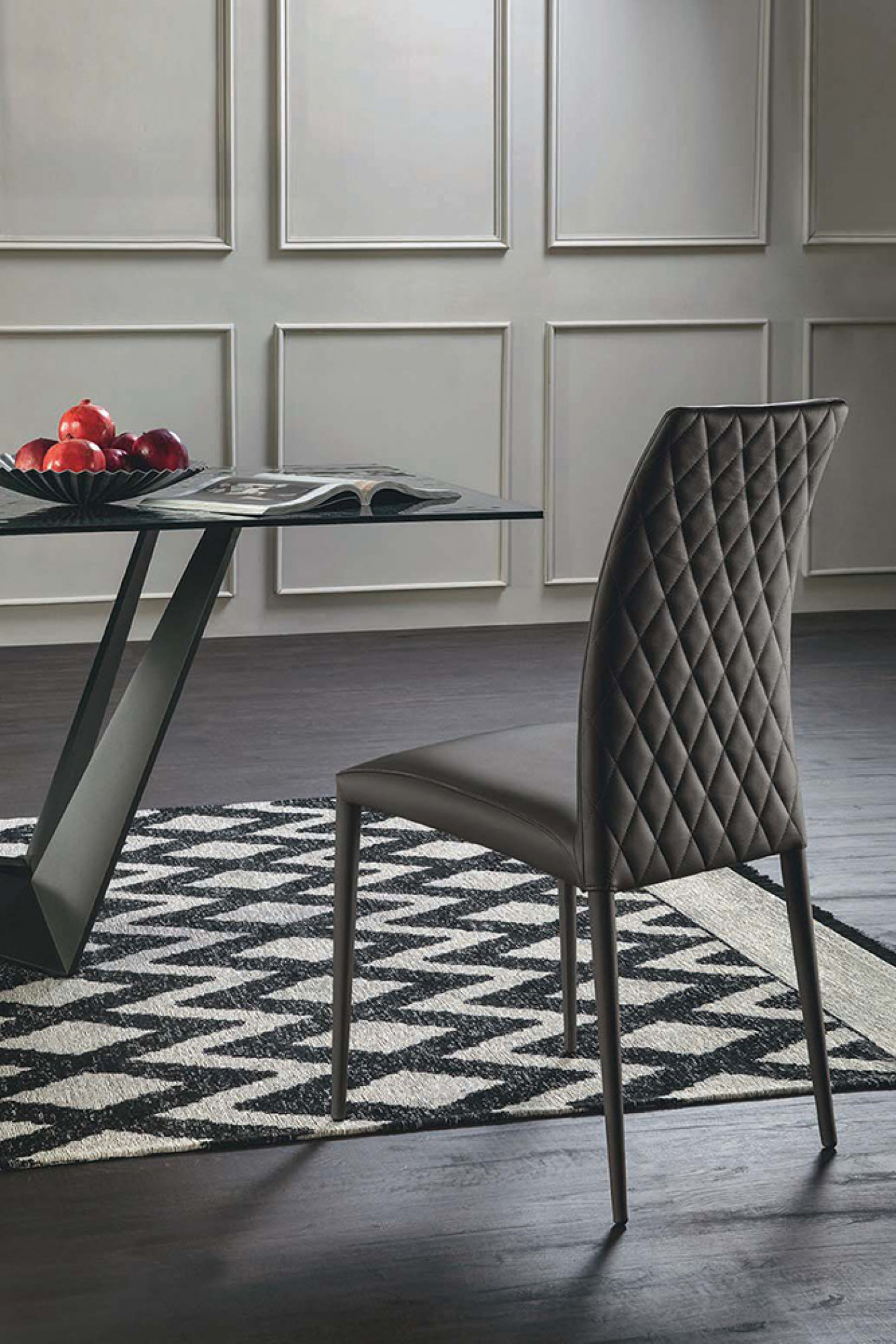 Chair with high density rubber padding for a comfortable and long-lasting effect. From today Charm dresses up with a new concept of craftsmanship, dictated by an elegant rhombus pattern on the backrest.
