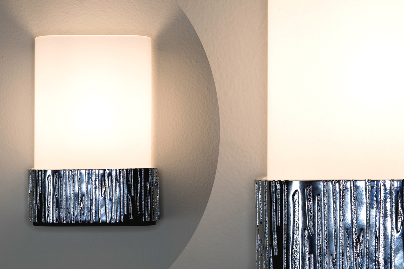 Greek name that means “Earth” and the earth is reminded by the iron cast metal belt, with its matheric look and by the engraved pattern. Functional and eclectic model, for corridors and living rooms. Also available in the IP44 rated version for the «salle de bains».