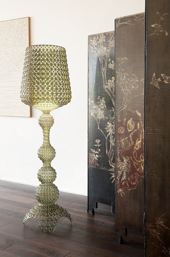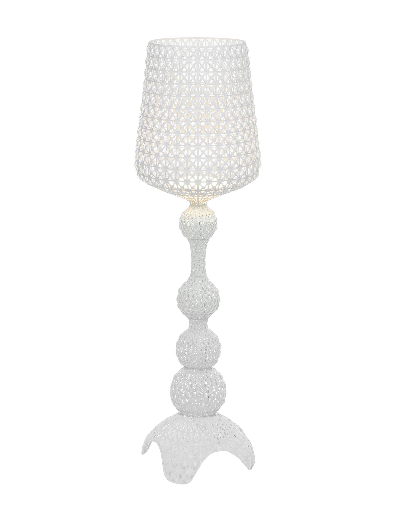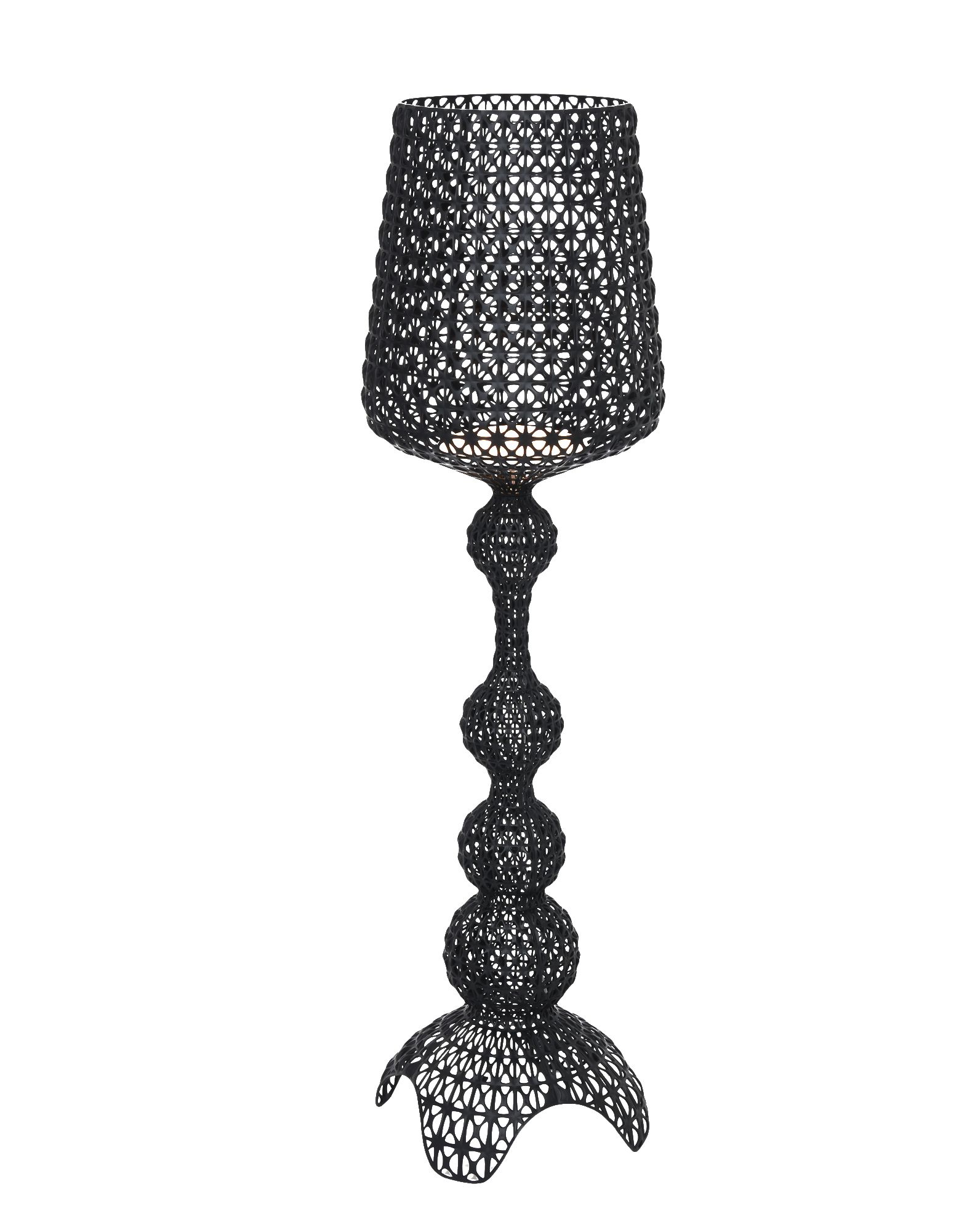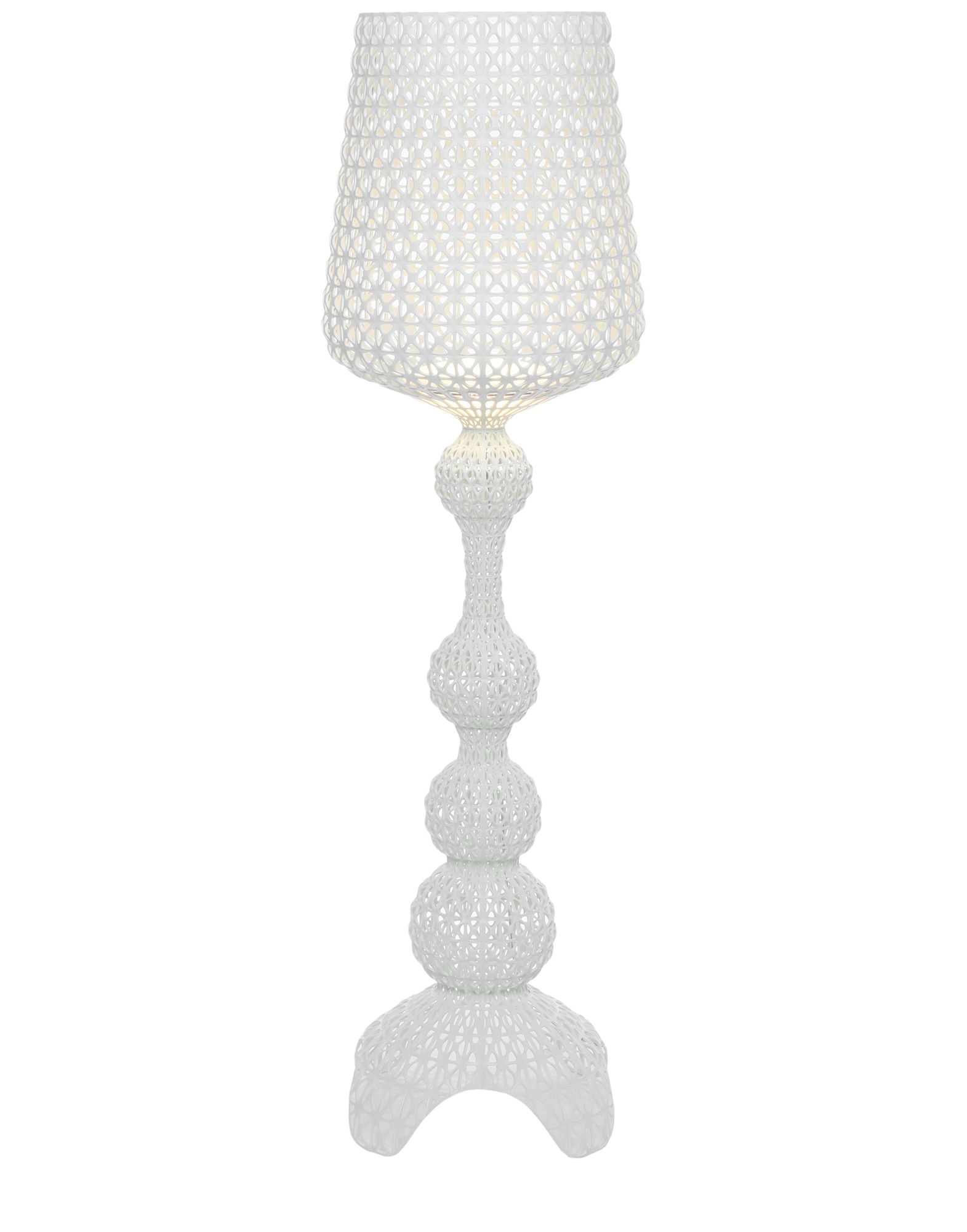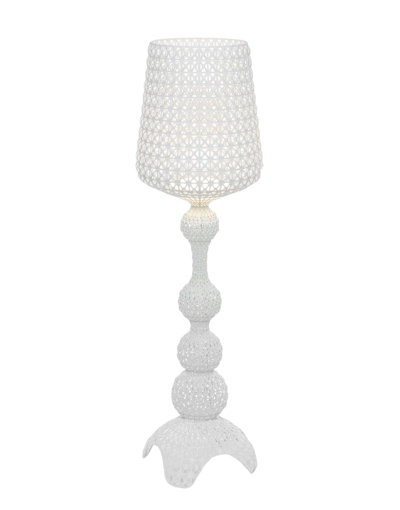 Торшер Kabuki отлитый под давлением. Используемая технология позволяет создать тканую структуру, похожую на кружево, с уникальной перфорированной поверхностью, через которую рассеивается свет. Доступный в наружной и внутренней версиях.