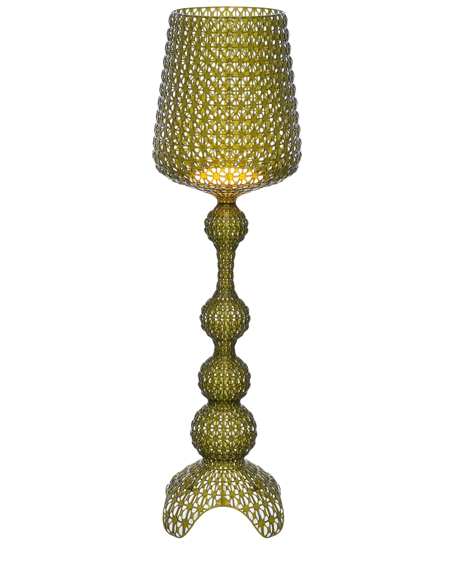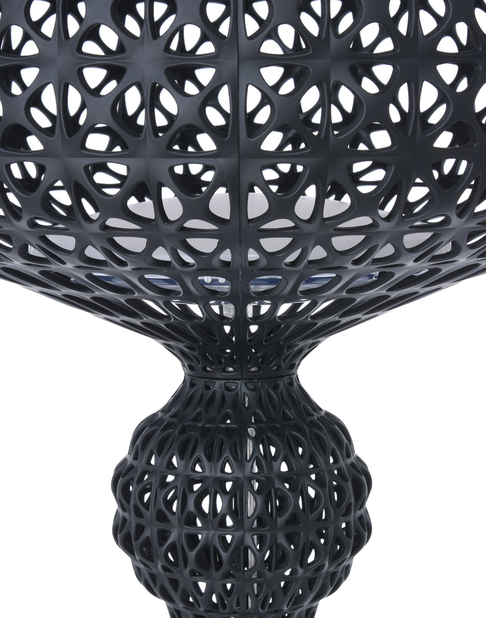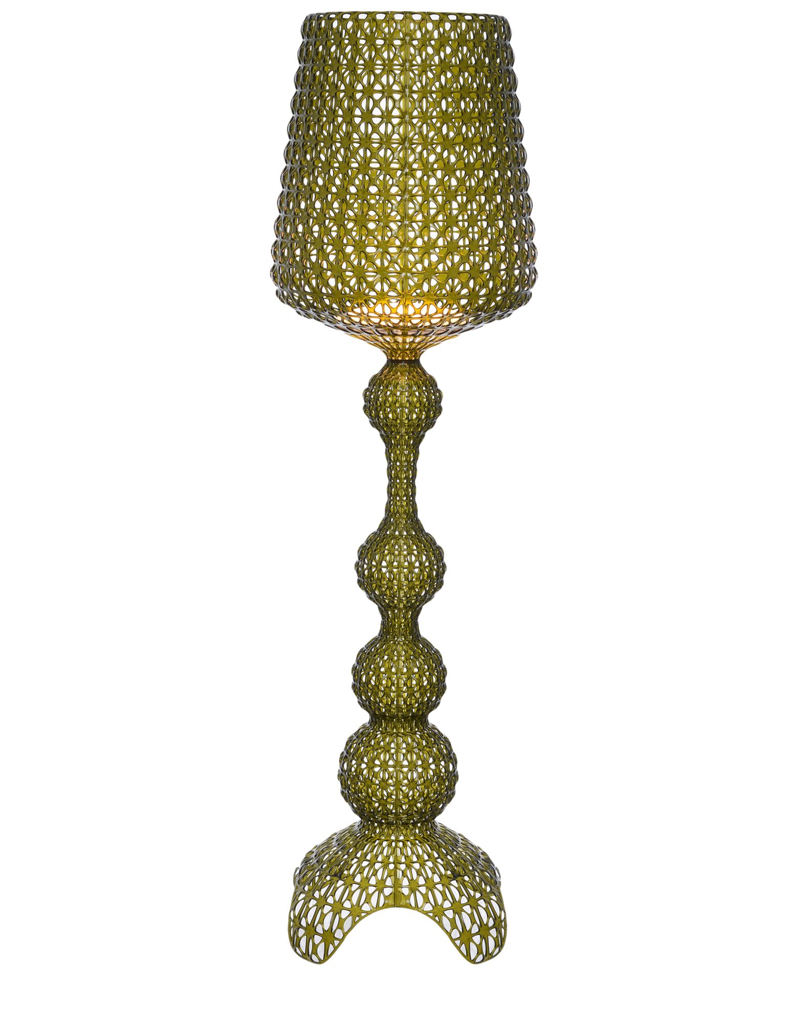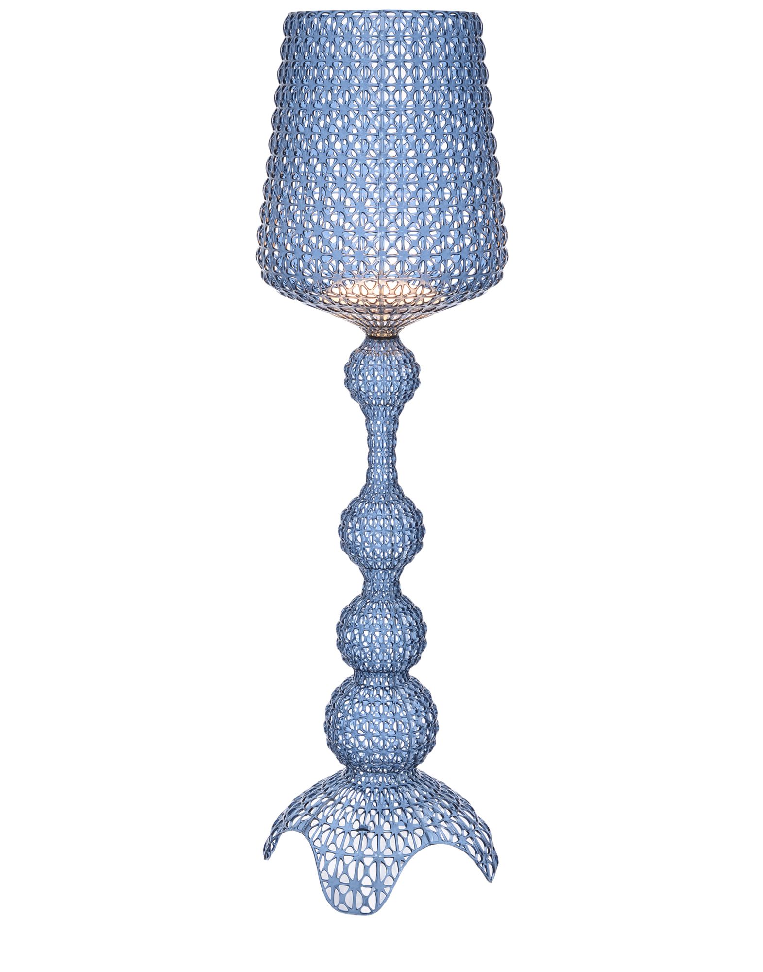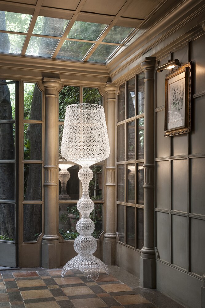Торшер Kabuki отлитый под давлением. Используемая технология позволяет создать тканую структуру, похожую на кружево, с уникальной перфорированной поверхностью, через которую рассеивается свет. Доступный в наружной и внутренней версиях.