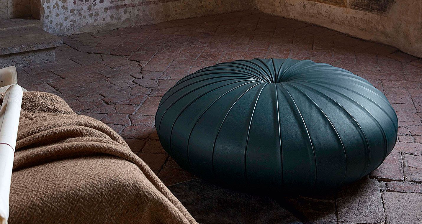 When designing the Esedra pouf Monica Förster took her inspiration from the large circular woven straw forms typical of Lapp handicrafts. The result is an inviting disk-shaped pouf of natural simplicity. Large, slightly overlapping segments create a refined decorative effect.