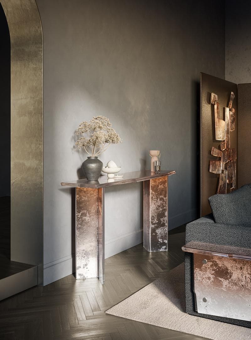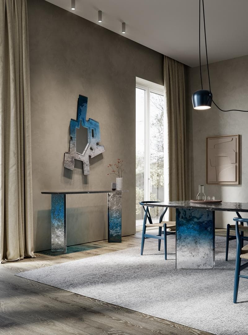 The geometric shapes of the objects "come to life" thanks to the unusual color and silver effects achieved by the Arte Veneziana craftsmen.