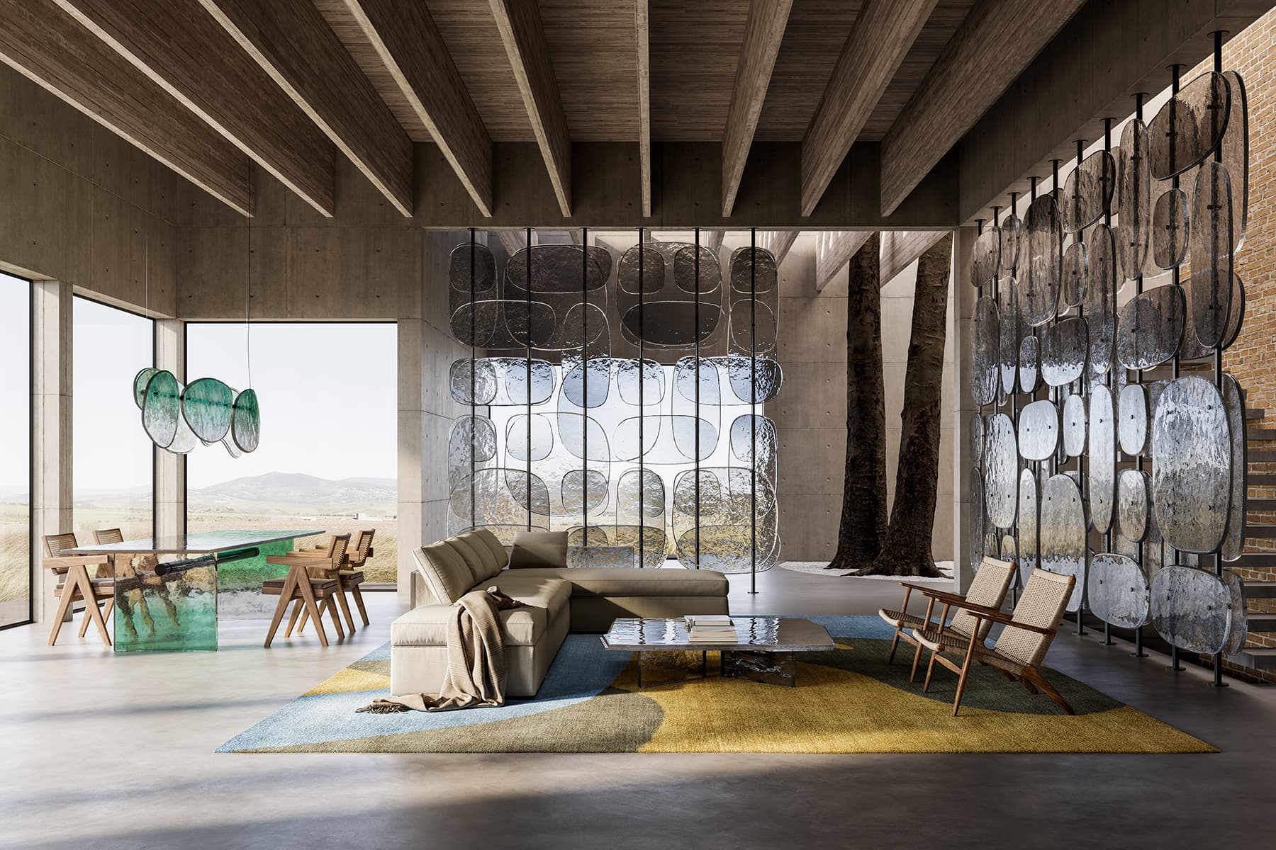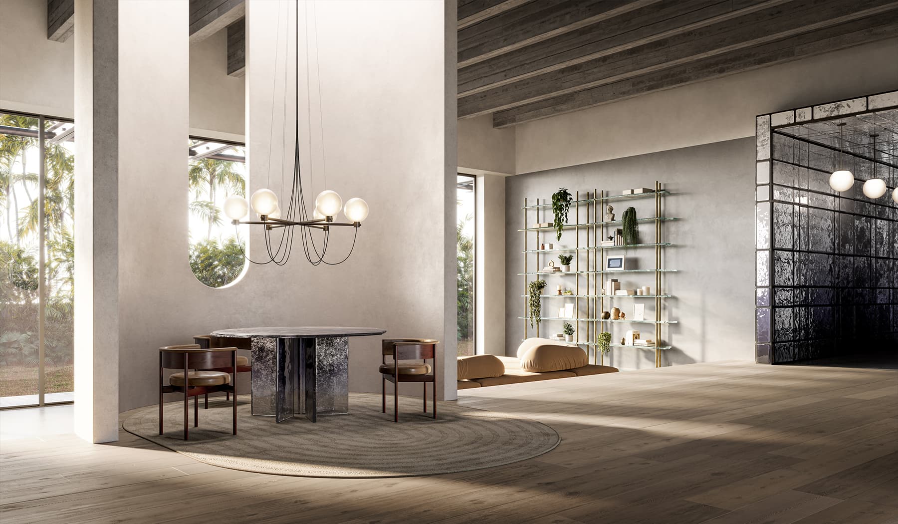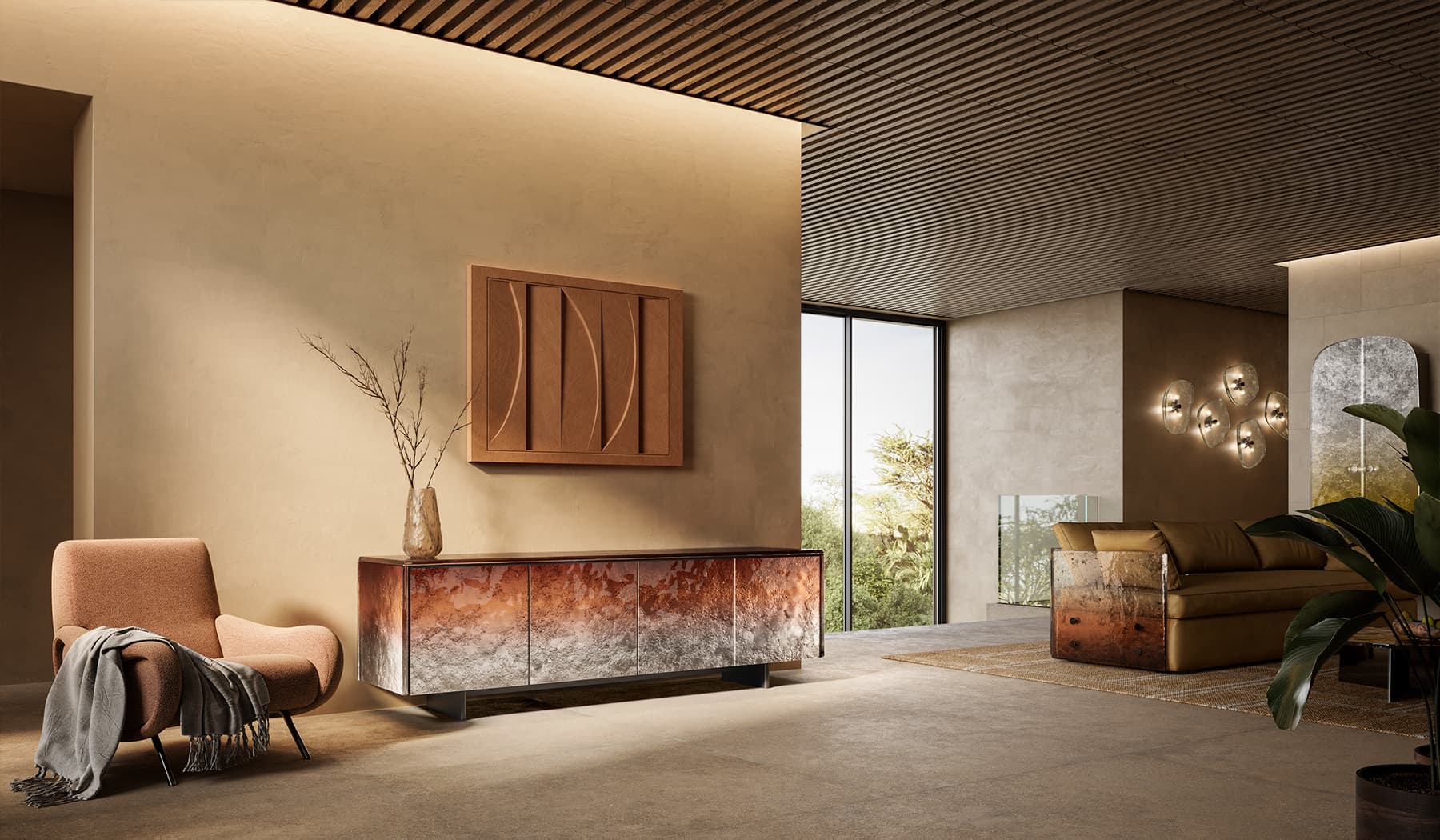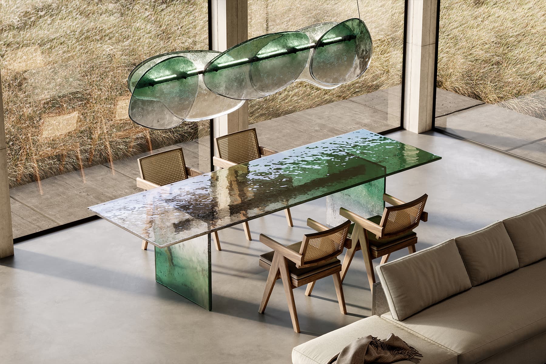 The MELT collection is a tribute to the industriousness of Murano and the lakeside nature that surrounds the island. Inspired by the technique of glass casting that takes place in the furnaces of Murano, through the irregularity of the fusion, MELT furniture takes on a soft aesthetic in its shapes and organic in its surfaces. But MELT is also a metaphoric representation of the material that surrounds Venice: water. The chromatic changes that, from hour to hour, from season to season, the lagoon undergoes become a source of inspiration for careful chromatic research on the surfaces of the furnishings that make up the collection.