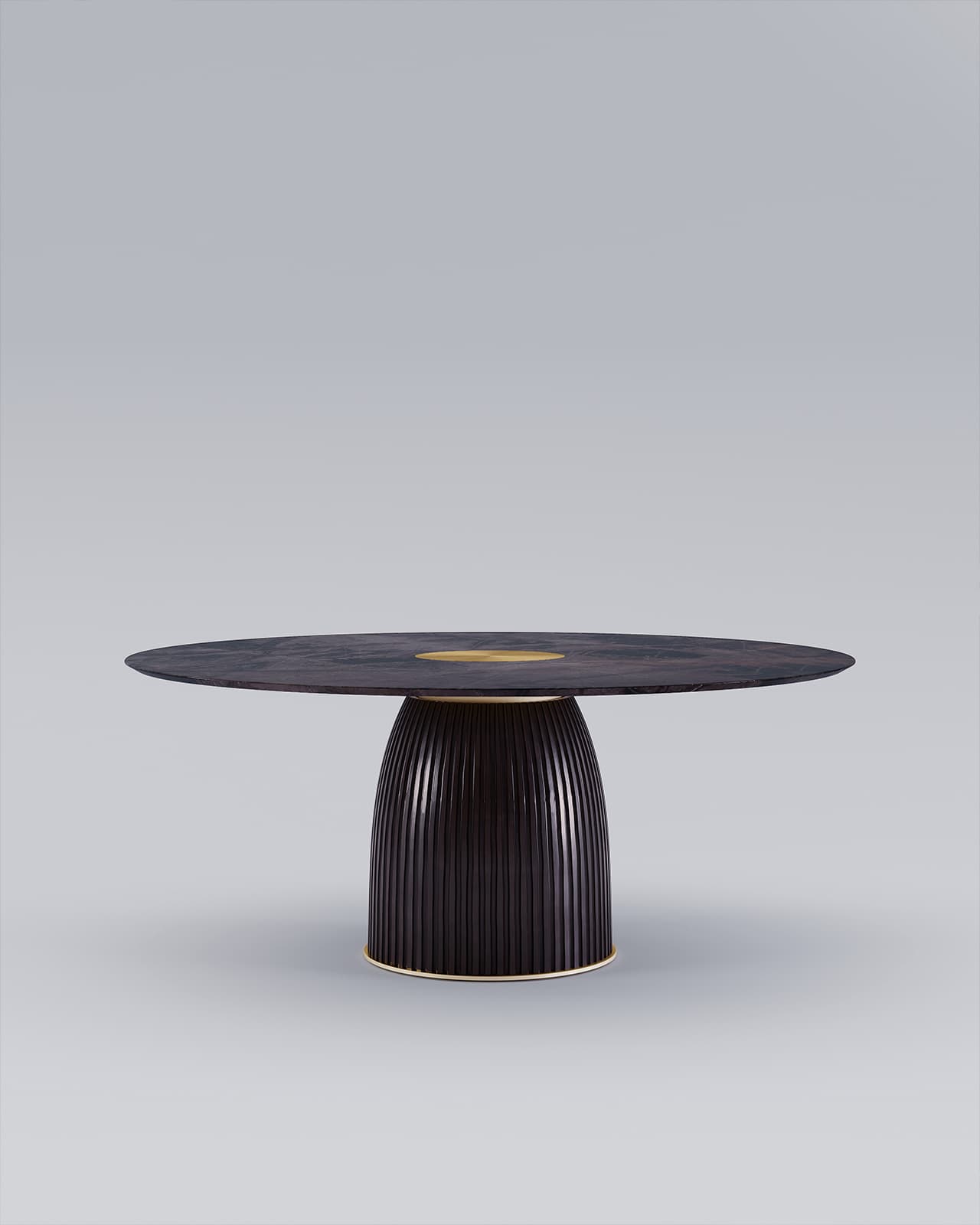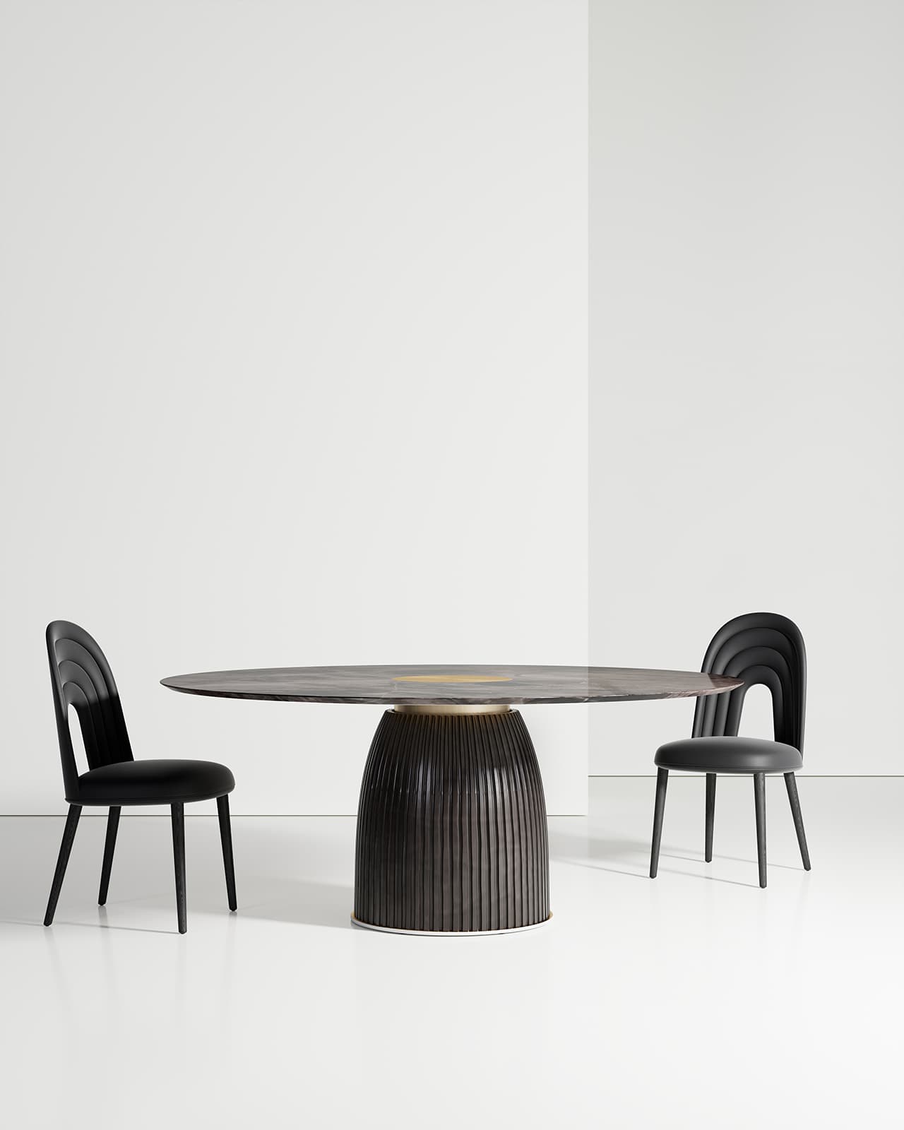The best-seller Dione table is renewed with a new and bold finish that explores the universal expressiveness of black. An essential yet powerful color that generates incisive contrasts, blending the statuary purity of black gloss marble and ceramic into a symphony of unique forms and finishes.