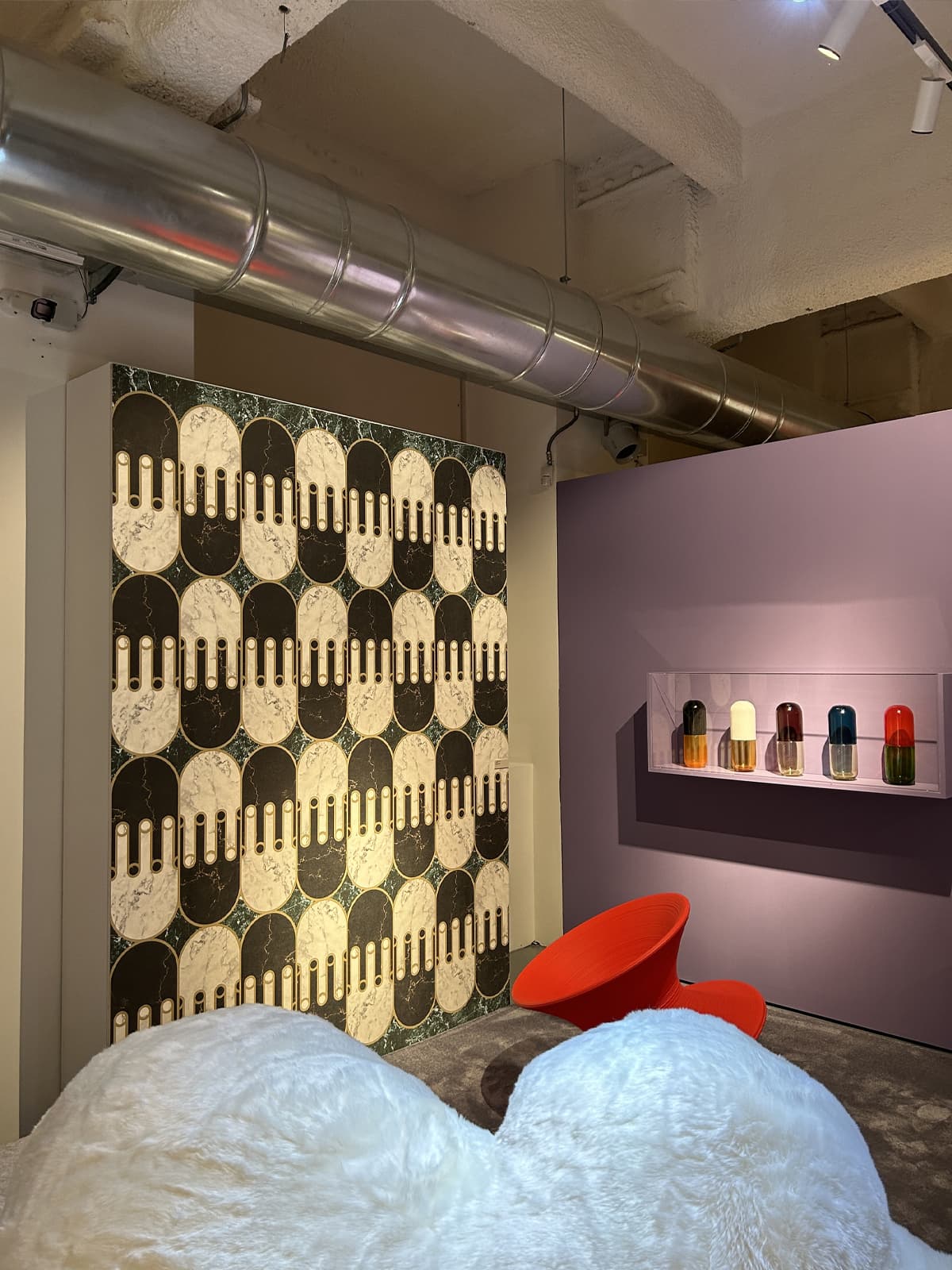 The 'Marble Greet' wallpaper is among the showcased works at "Le Case di Carta", an event celebrating the twentieth anniversary of Marie Claire Maison Italia. From November 16th to 19th at MUDEC, curated by Domitilla Dardi and developed in collaboration with the DWA studio, the exhibition offers an engaging glimpse into the concept of dwelling over two decades, showcasing five thematic environments.These spaces explore the multifaceted aspects of contemporary life and the domestic experience, ranging from personal aspirations and passions to our small daily habits, each contributing to the uniqueness of every home.