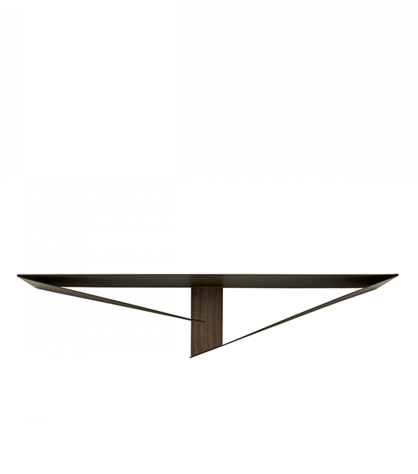 The idea behind Alabtros console table, starts from trying to minimalize the sweet and elegant lines of that beautiful bird. The curves of the wings become angole, and the plumage turns into metal. A wooden insert, both simple and firm, stands there to combine them.