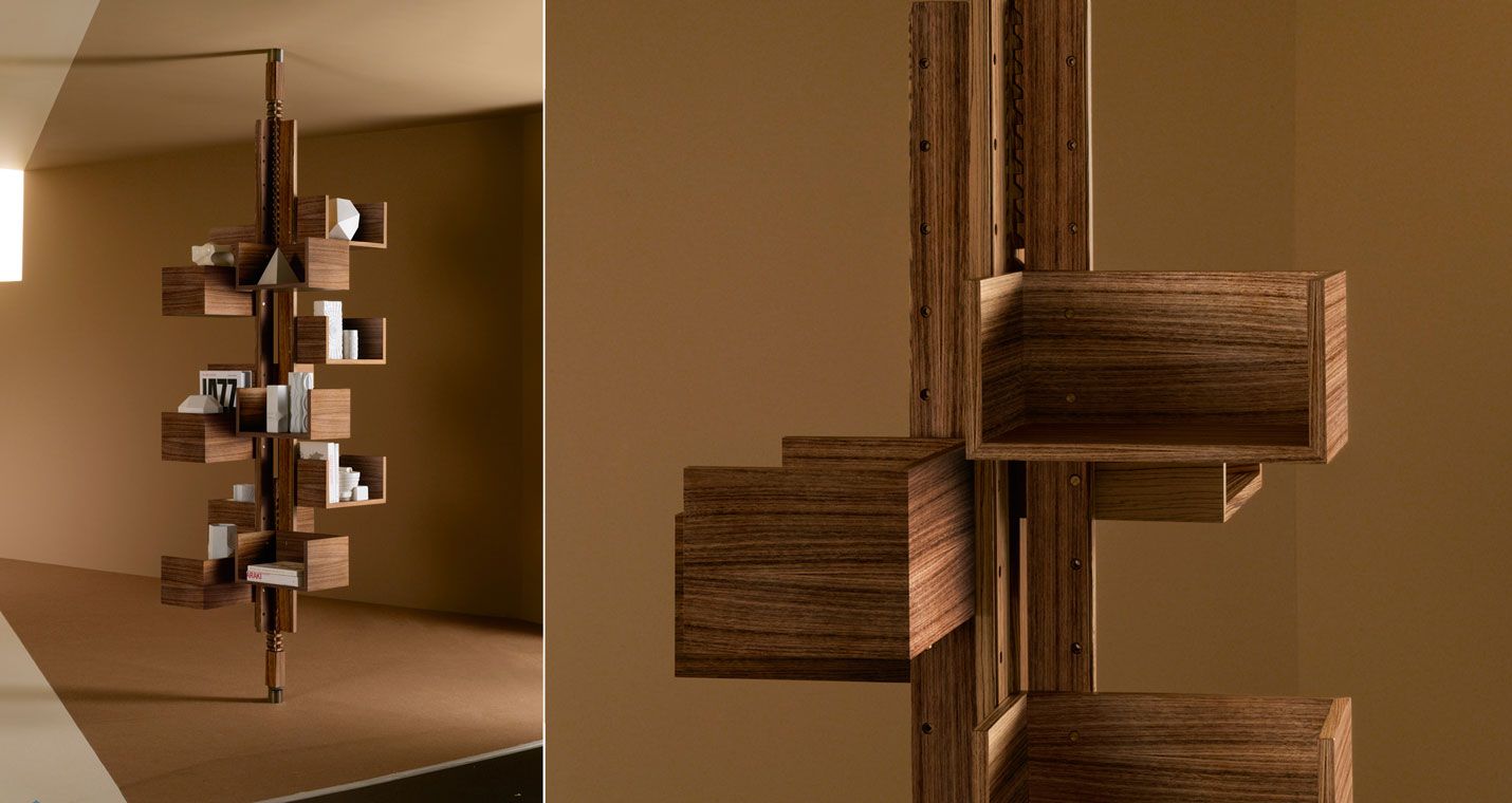 Designed in the late 50’s by Gianfranco Frattini as a “floor-to-ceiling” central bookcase, Albero was created for use in interior settings rather than for mass production. The Albero bookcase is formally associated with the Neo-Liberty period and, in terms of product type, with the floor-to-ceiling bookcase systems that were popular throughout the 1950’s and 60’s.