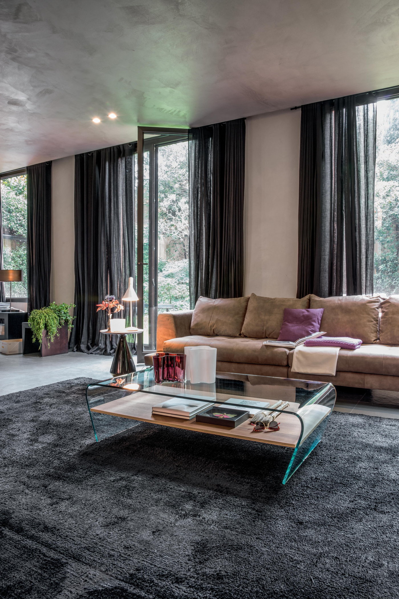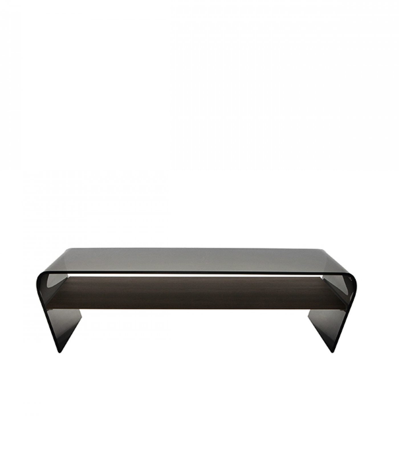 A coffee table that combines the lightness of curved glass, with a tempered glass, or wooden shelf. Two different styles and two different materials that are immediately recognised, materials to make your living-room perfect and elegant.