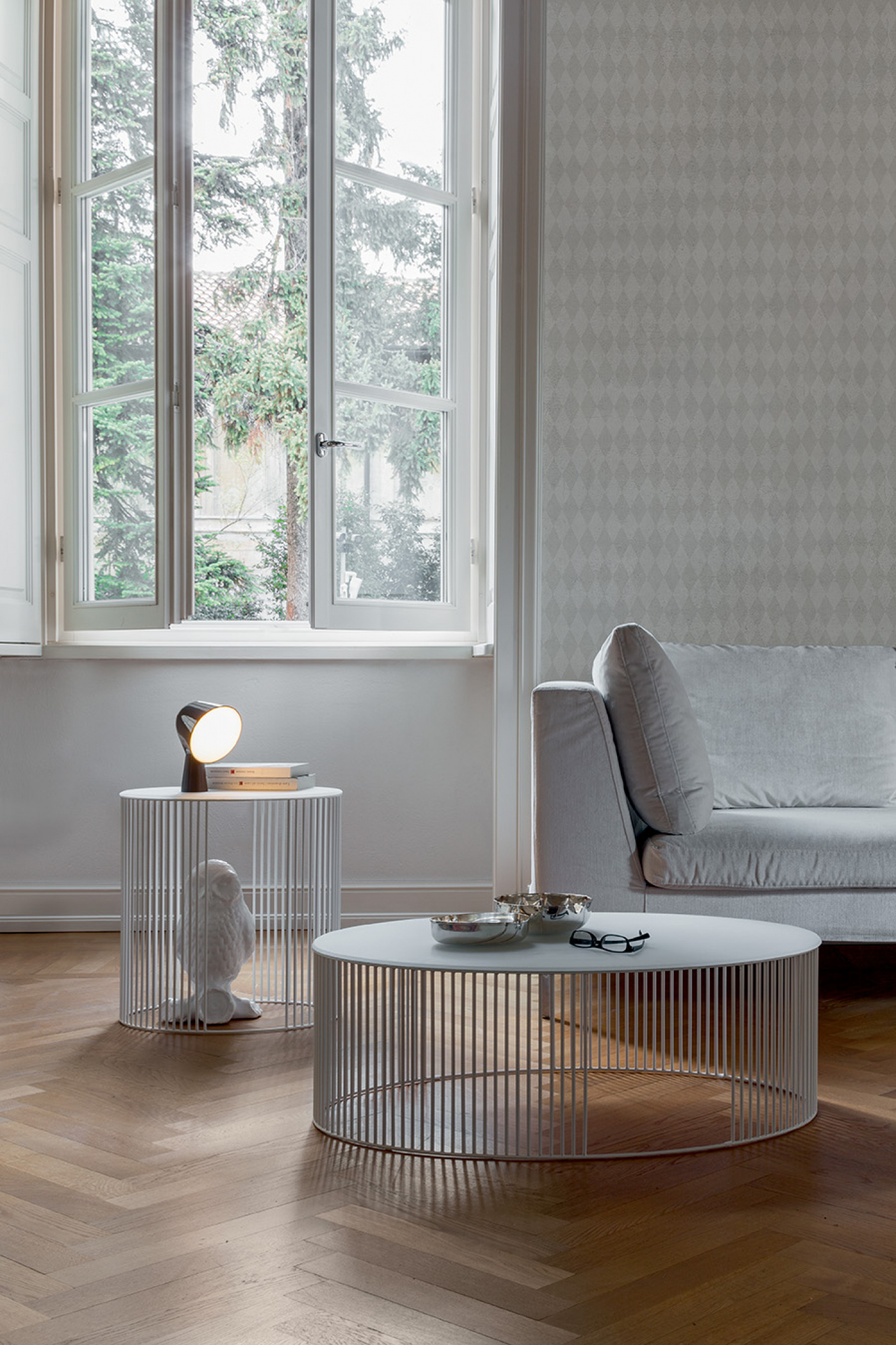 Andra’s composition was developed in vertical lines, and a circular, varnished metal rod as a belt: it can be white, to brightly shine, or black, to exude elegance. The structure’s metal is put together with the tempered, frosted glass top. The color may be white, or black, as well.
