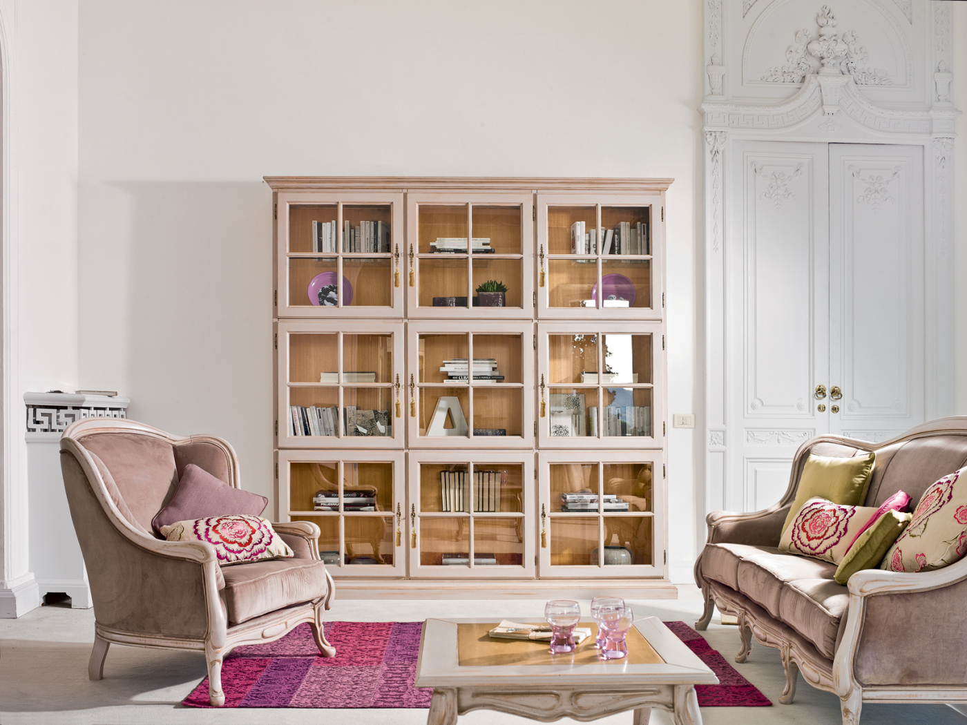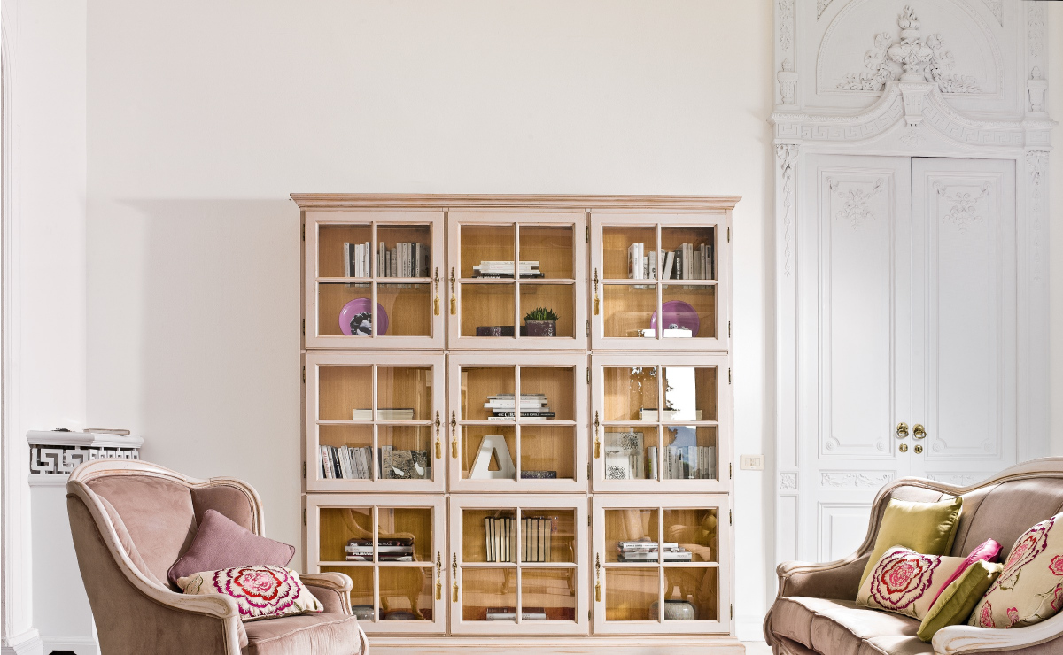 Artemis is a composition, perfect in its sometimes country and sometimes shabby-chic style: it is an elegant and simple series of containers, whose colours are brought out by the transparent showcases.