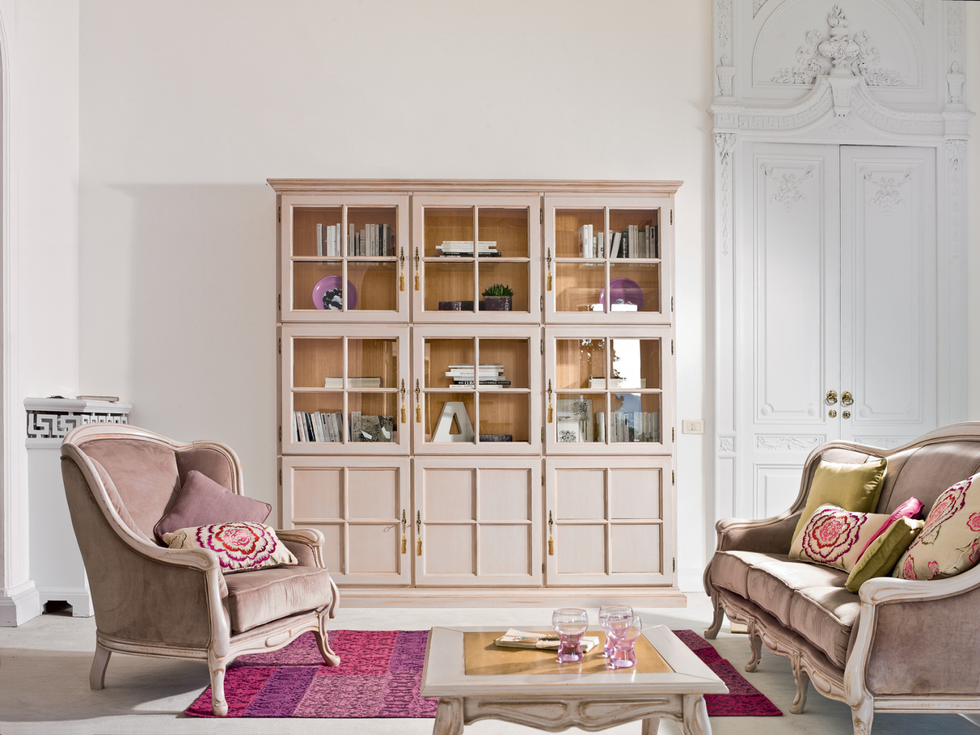 Thought as a three-levels set of containers, Asada is a composition, characterisez by the contrast between its glass doors and its wooden doors, on the bottom. An object developed to be useful, and calmly elegant.
