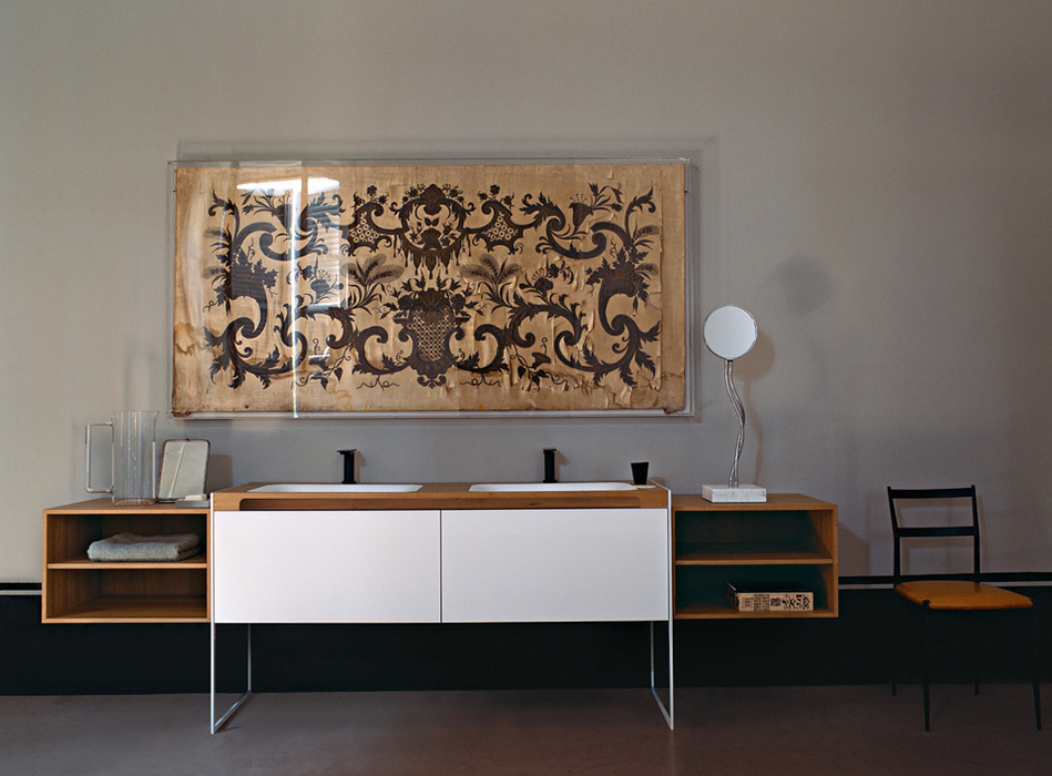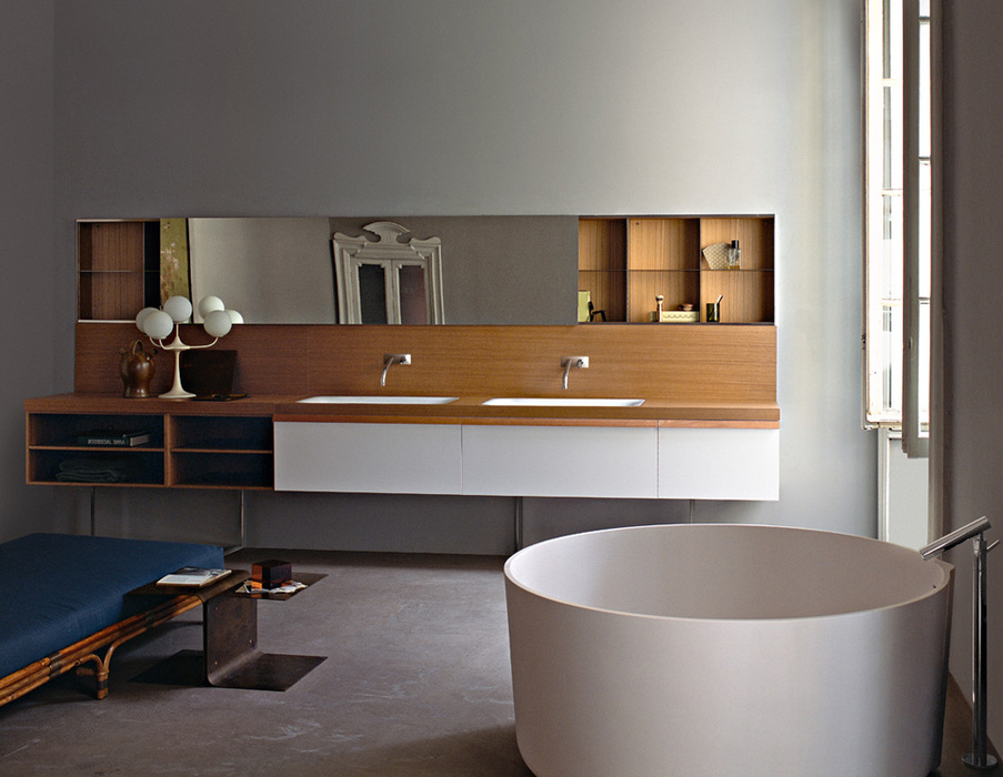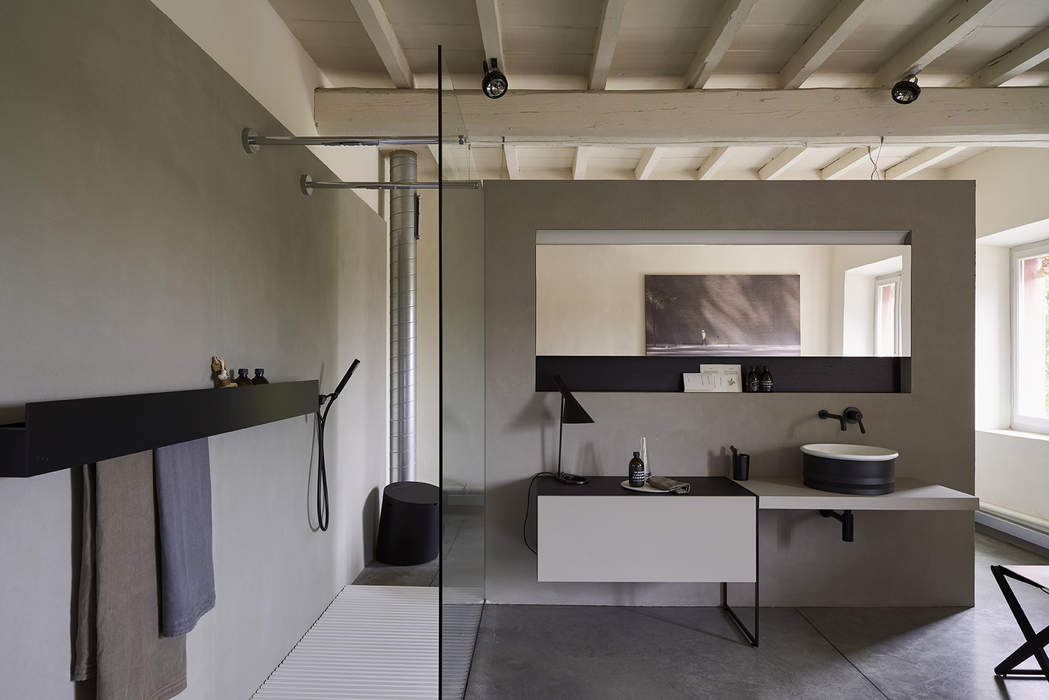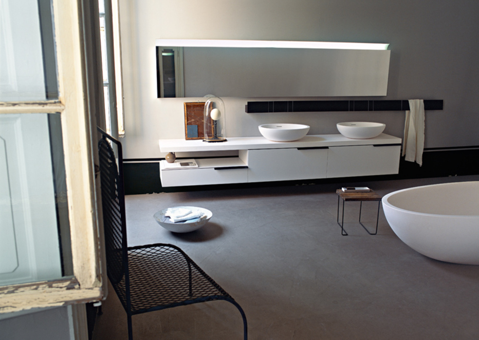 A vast programme of counter tops in three thicknesses 3 - 6 - 12 cm structures and storage units that integrate with Agape washbasins for furnishing and personalizing the bathroom. A system that allows each individual to find an ideal solution in every sense appearance materials and use of space with total ease of installation perfect stylistich armony and welcoming functionality.