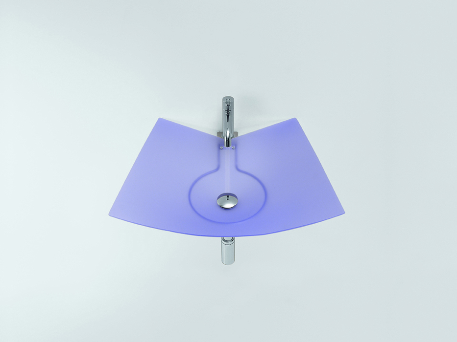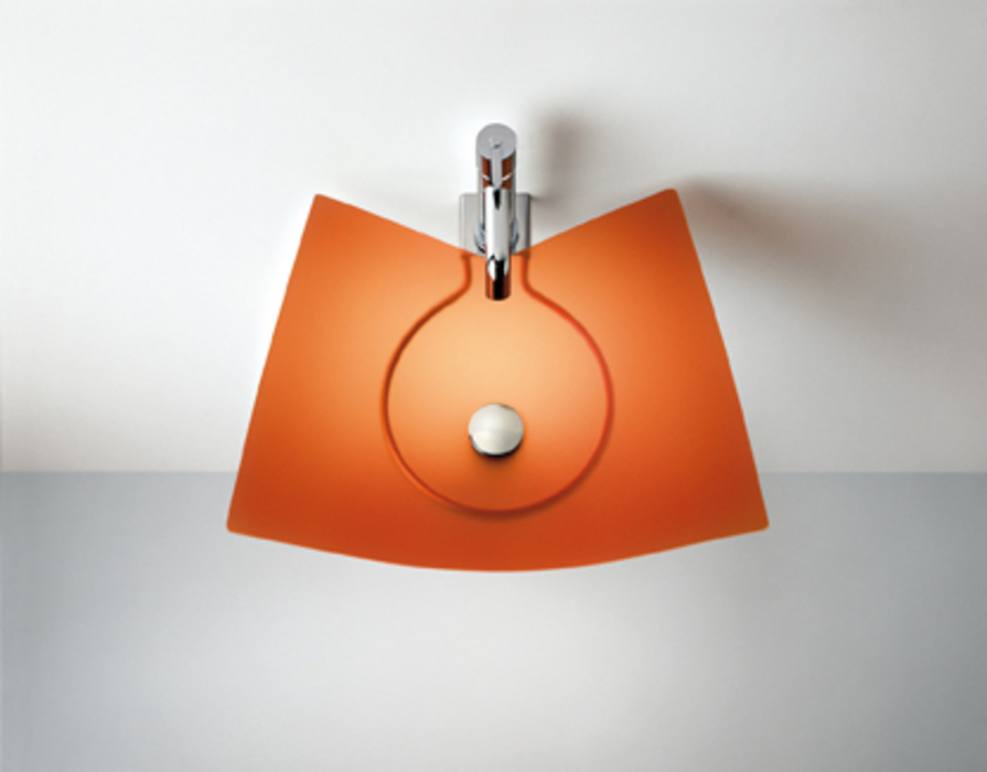 Washbasin made from flexible opaque PVC. Available in three sizes and four colours orange green violet and grey. Supported by a stainless steel structure which also supports the monobloc mixer. Foglio can be matched with any mirrors in the Agape range. while stocks last Selezione ADI Design Index 2000