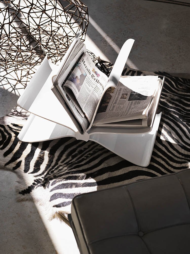 The Front Page design captures the fluttering pages and breathes life into an object of lightness and elegance with its sinuous lines fanning into a curved semicircle of shelves.