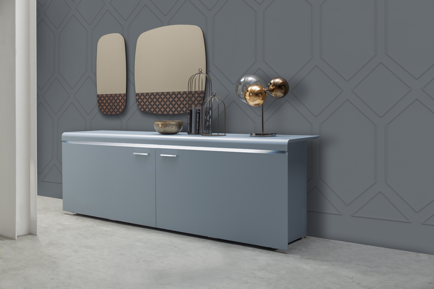 A neat and linear sideboard, with regular doors that follow its basic drawing: Goya represent soundness, elegance and willing to go back to simple and even shapes. A more contemporary note is given by the optionals: a LED light on the top.