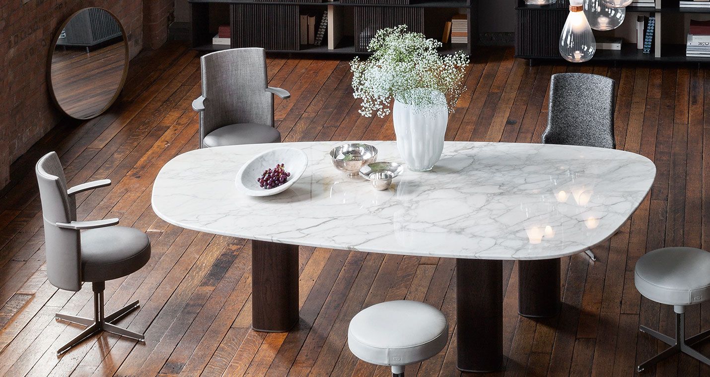 With Jane, Jean-Marie Massaud rewrites the rulebook and envisages the table as an organic and free element in space. Unlikely to go unnoticed, the Jane table is held up by three imposing and irregular supports that almost appear to have been sculpted.