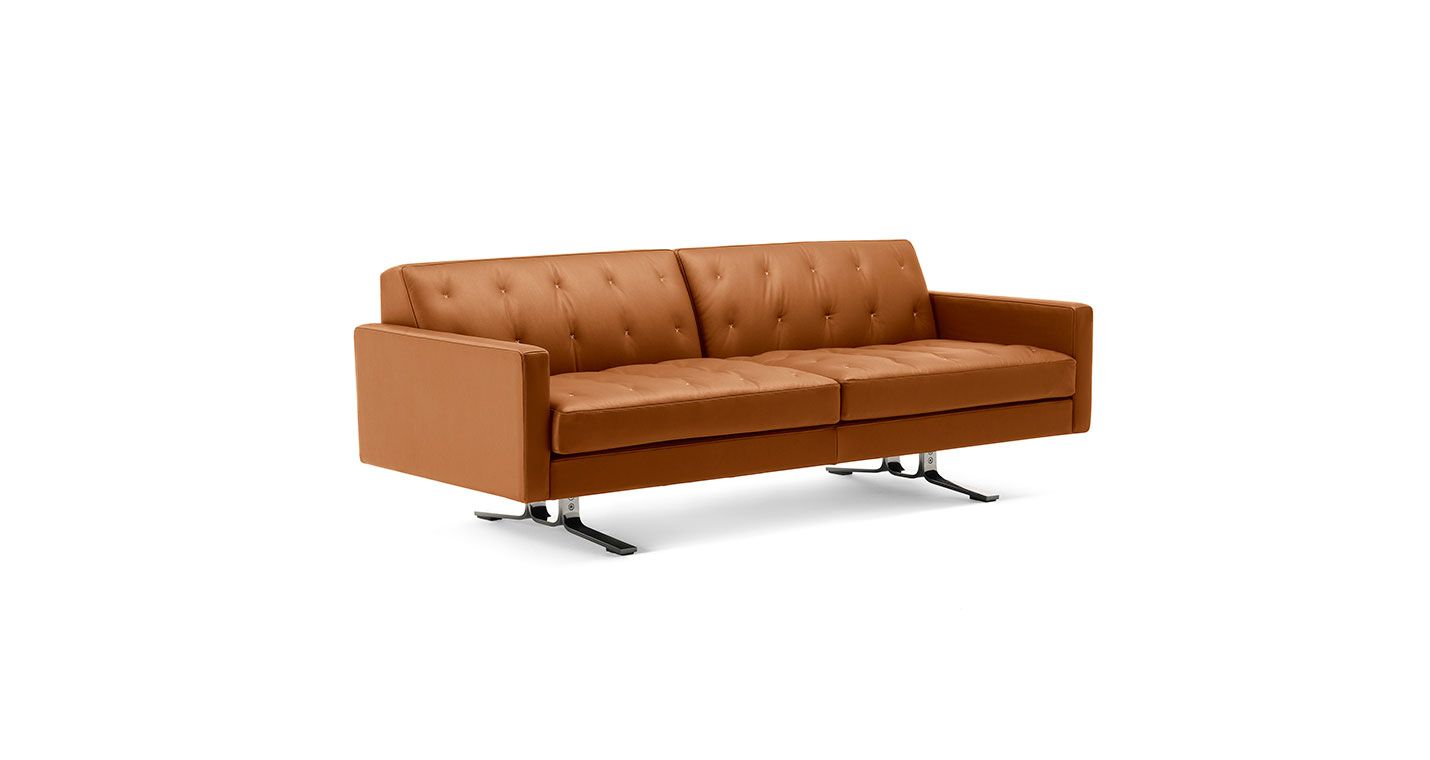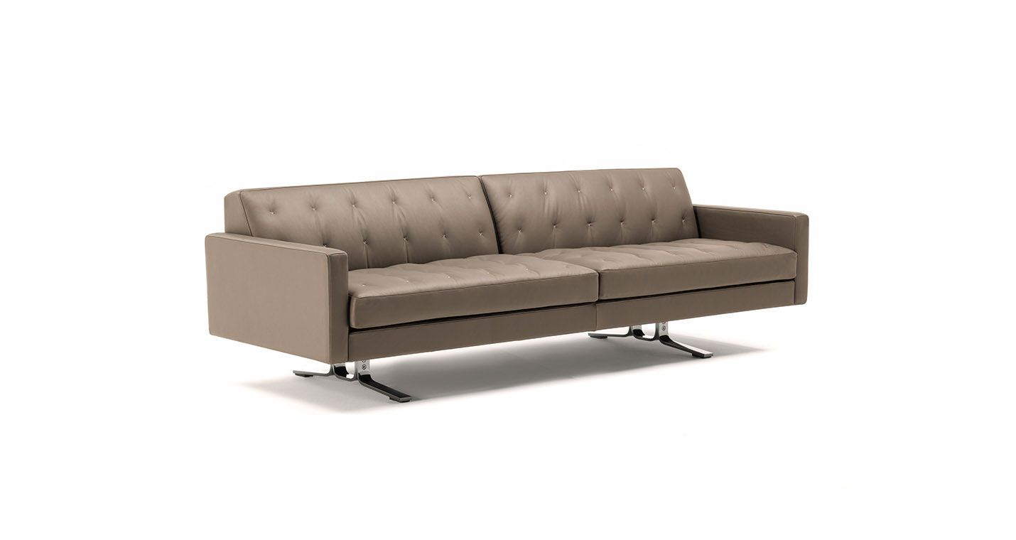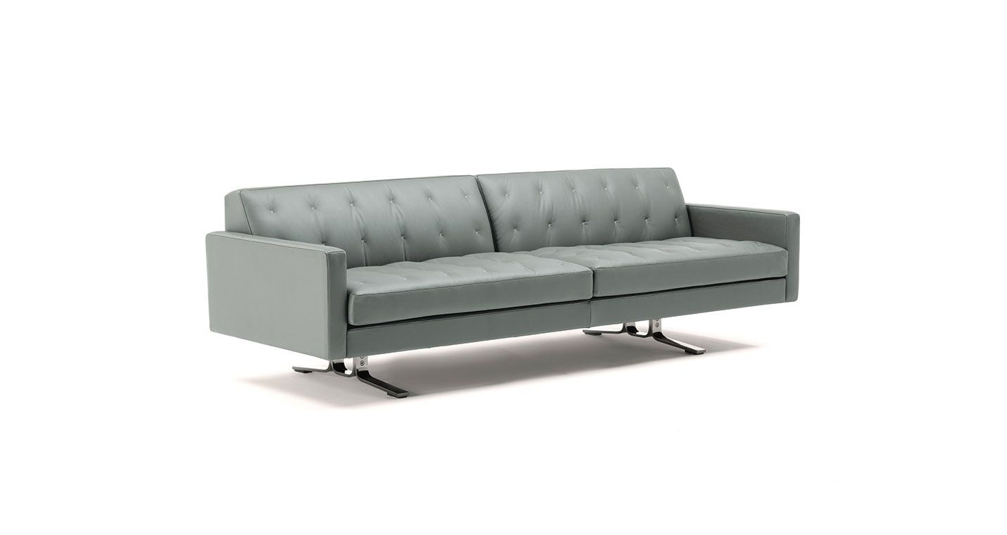 Переосмысление знаменитого Кеннеди Жан-Мари Массо. Компактный и удобный диван Kennedee JR отличается элегантным исполнением с помощью одинарной строчки «X», выполненной вручную с контрастной нитью на обивке спинки и подушек сидений.