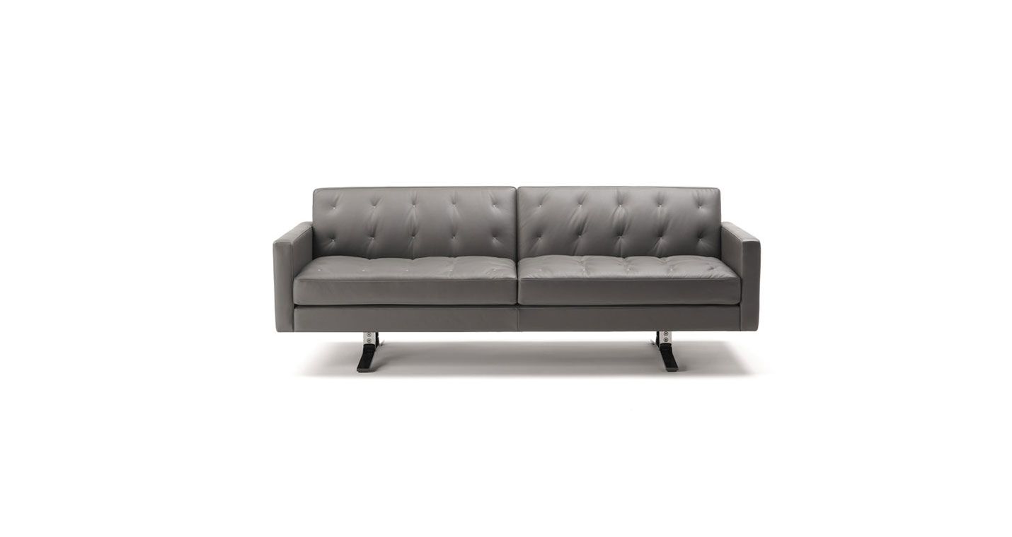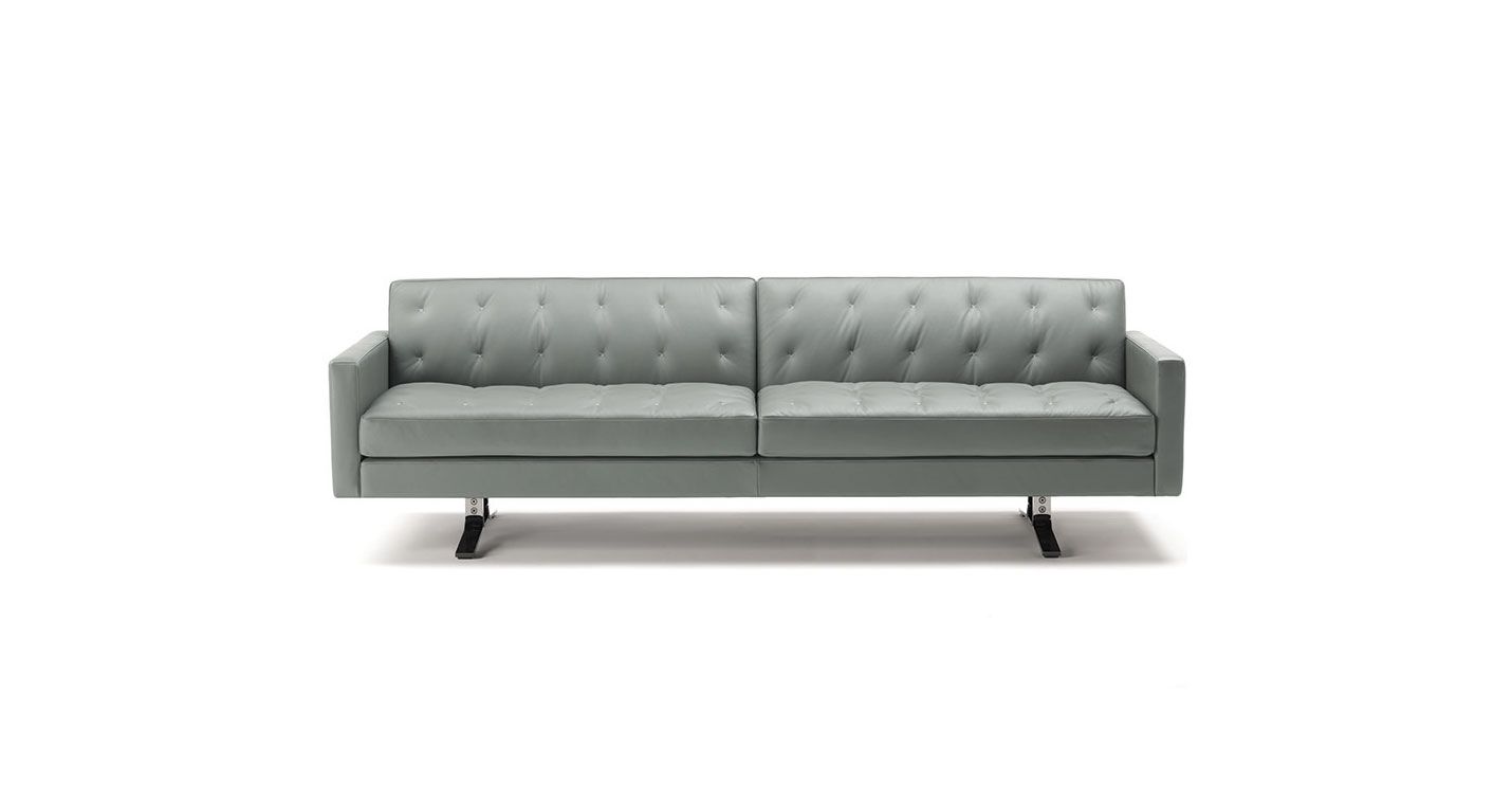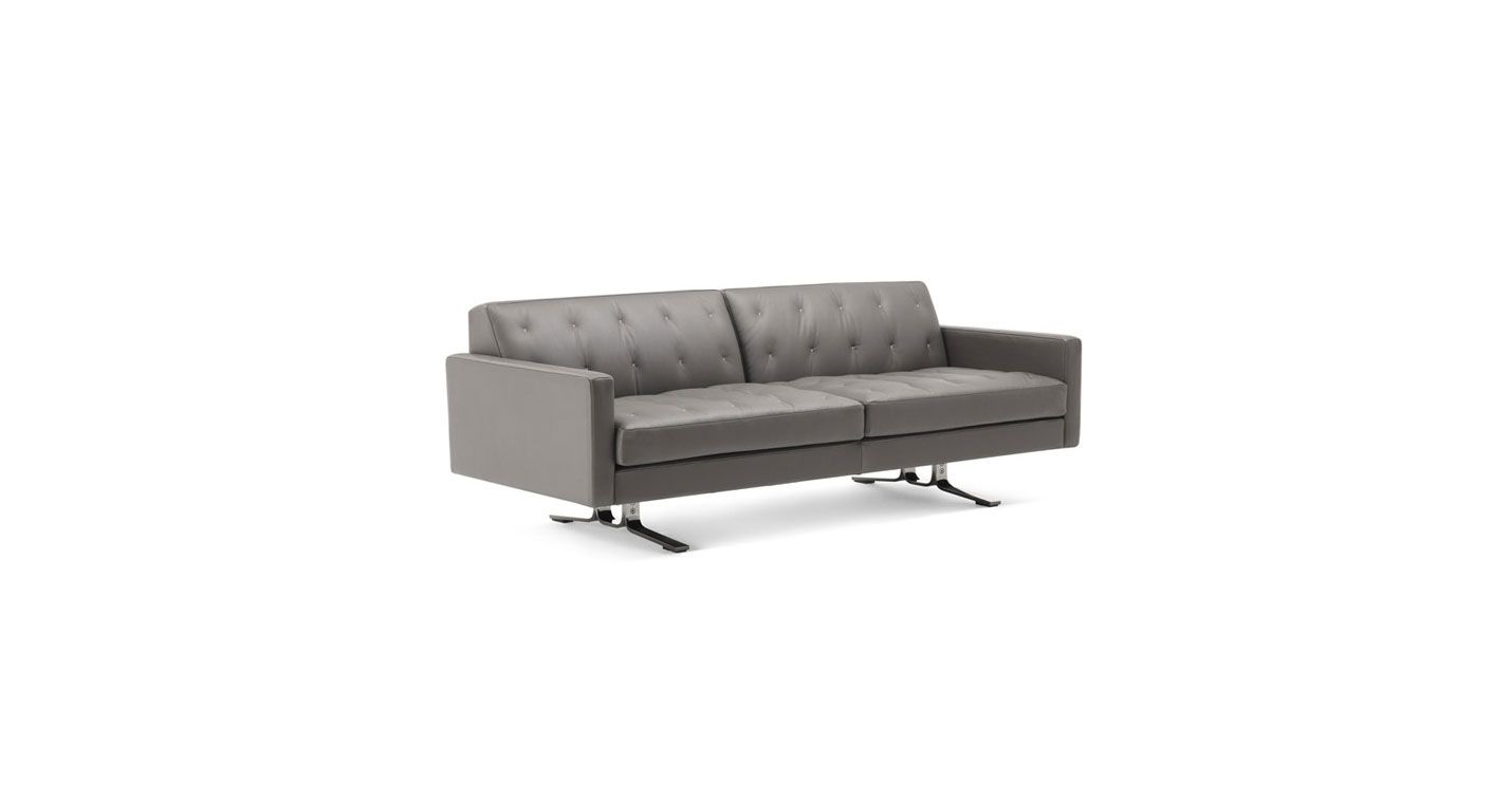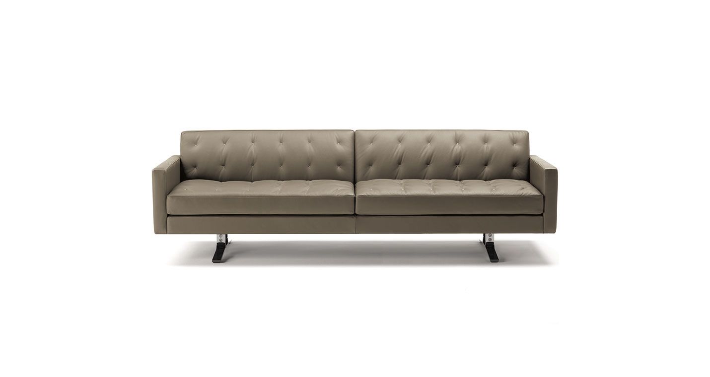 Переосмысление знаменитого Кеннеди Жан-Мари Массо. Компактный и удобный диван Kennedee JR отличается элегантным исполнением с помощью одинарной строчки «X», выполненной вручную с контрастной нитью на обивке спинки и подушек сидений.