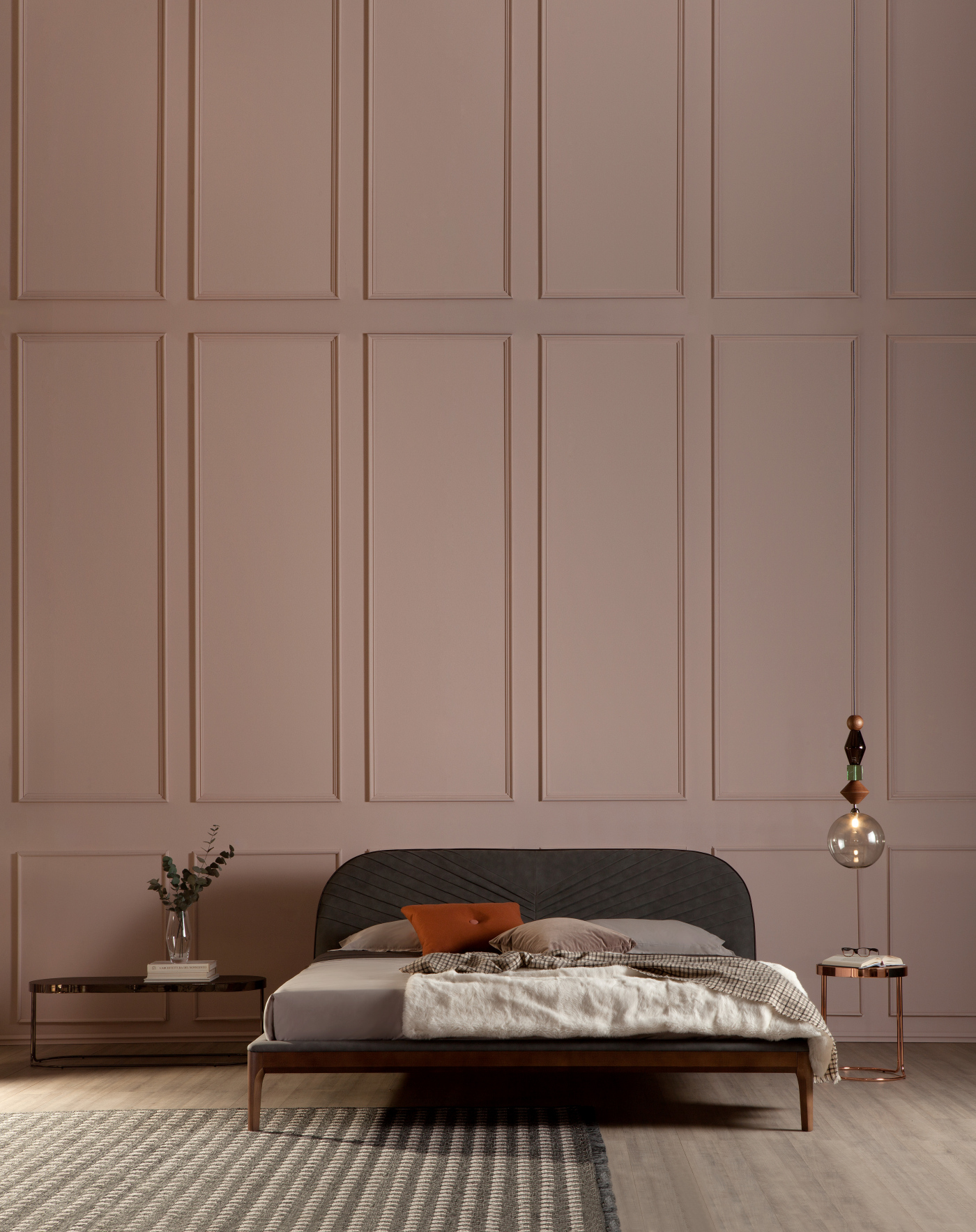 Michelangelo’s wooden structure is slim and essential, meant to exalt the headboard, which is a sartorial masterpiece: rounded, with an eco-leather, leather or grain leather upholstery, its hand-made pleating generates a wonderful fan-like effect. Thanks to all the kinds of leather and colors available, Michelangelo is an extremely customizable item.