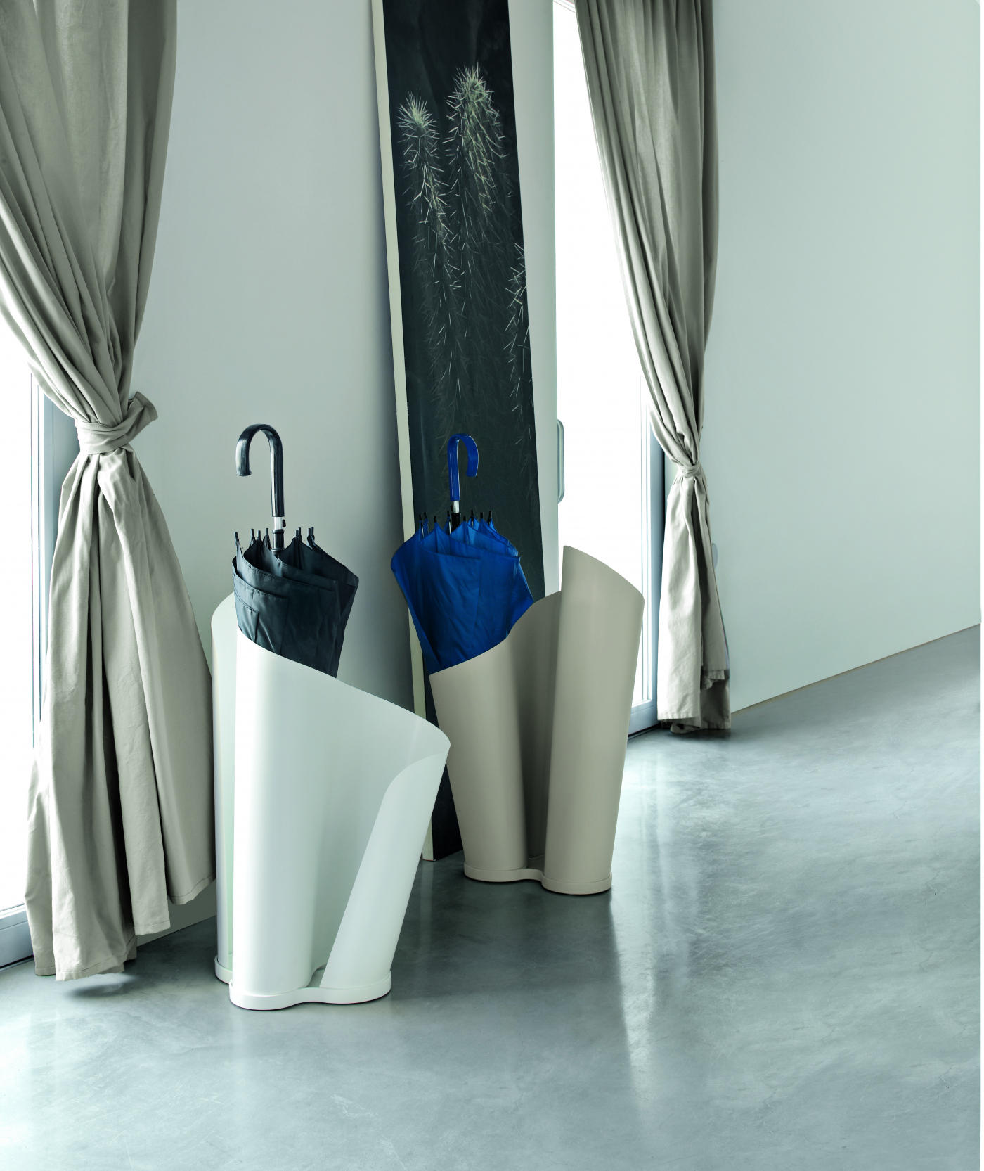 Curved metal takes the shape of a petal, with Narciso, softly twisting around on itself. An elegant, easily adaptable umbrella stand, perfect for every room, and available in tens of different colors.