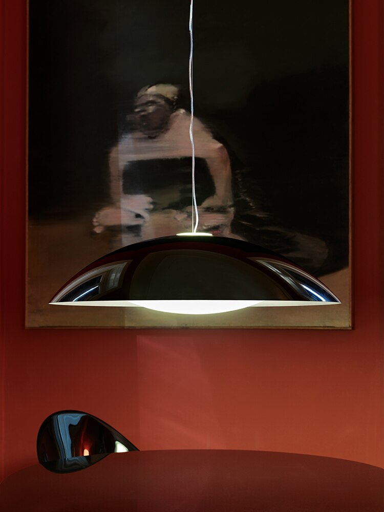 Neutra is a circular, extra-large hanging lamp, composed of two shell-like elements which enclose the structure like a snap-together toy. The structure’s unusual shape diffuses the light uniformly over the entire surface, while a simple regulation system