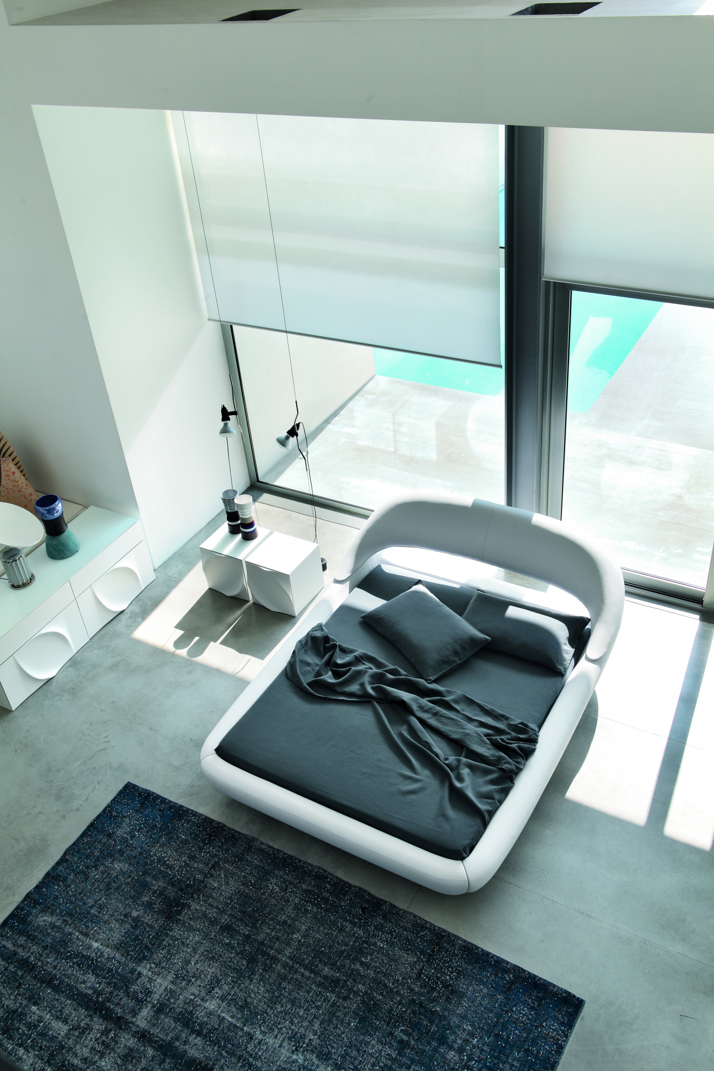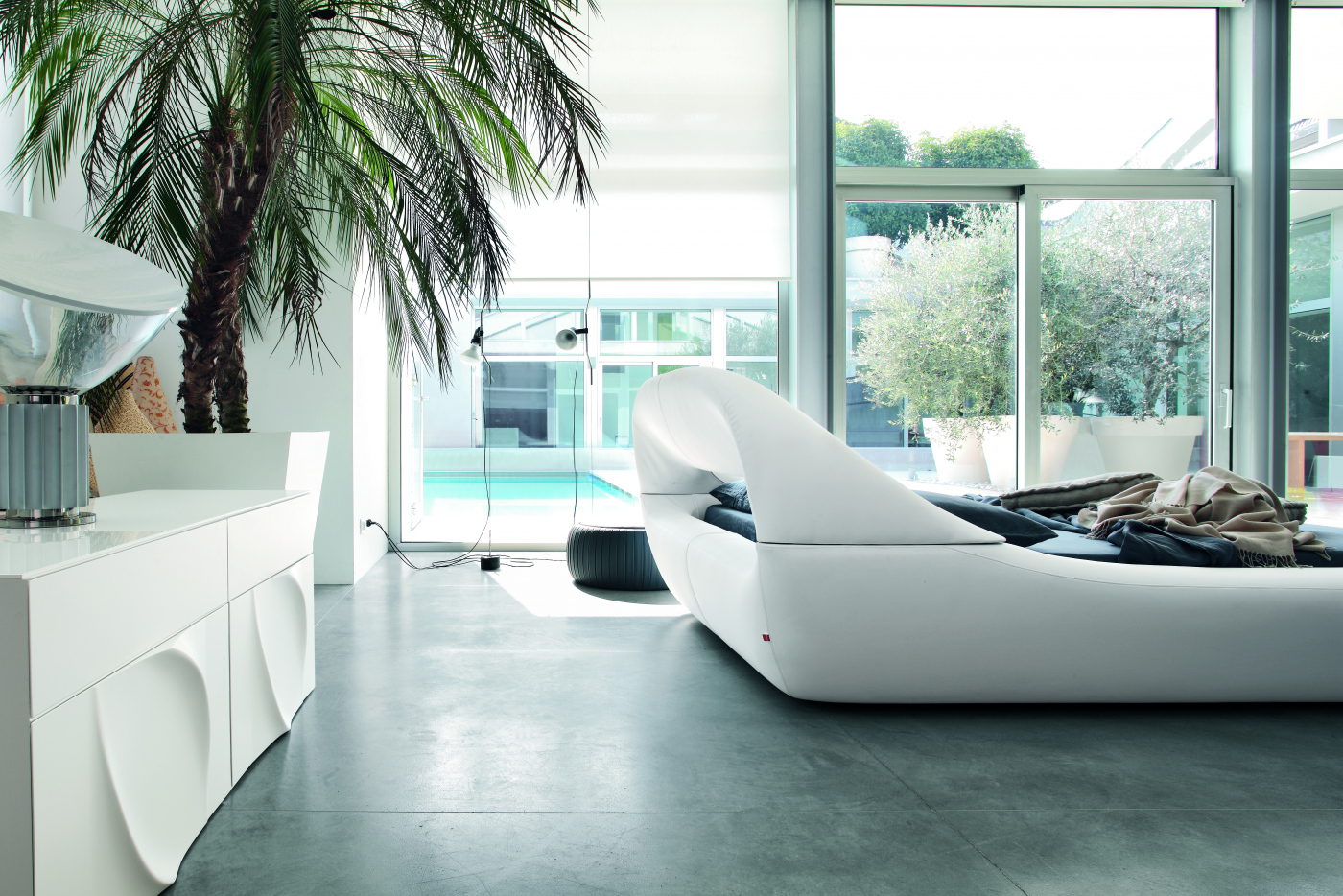A sharply modern line, to make SLEEPY an almost ultra-modern bed, with a leather furbishing that leads it back to resting, comfortable atmoshperes. Three different sizes are available, making it perfect for a contemporary, essential room.