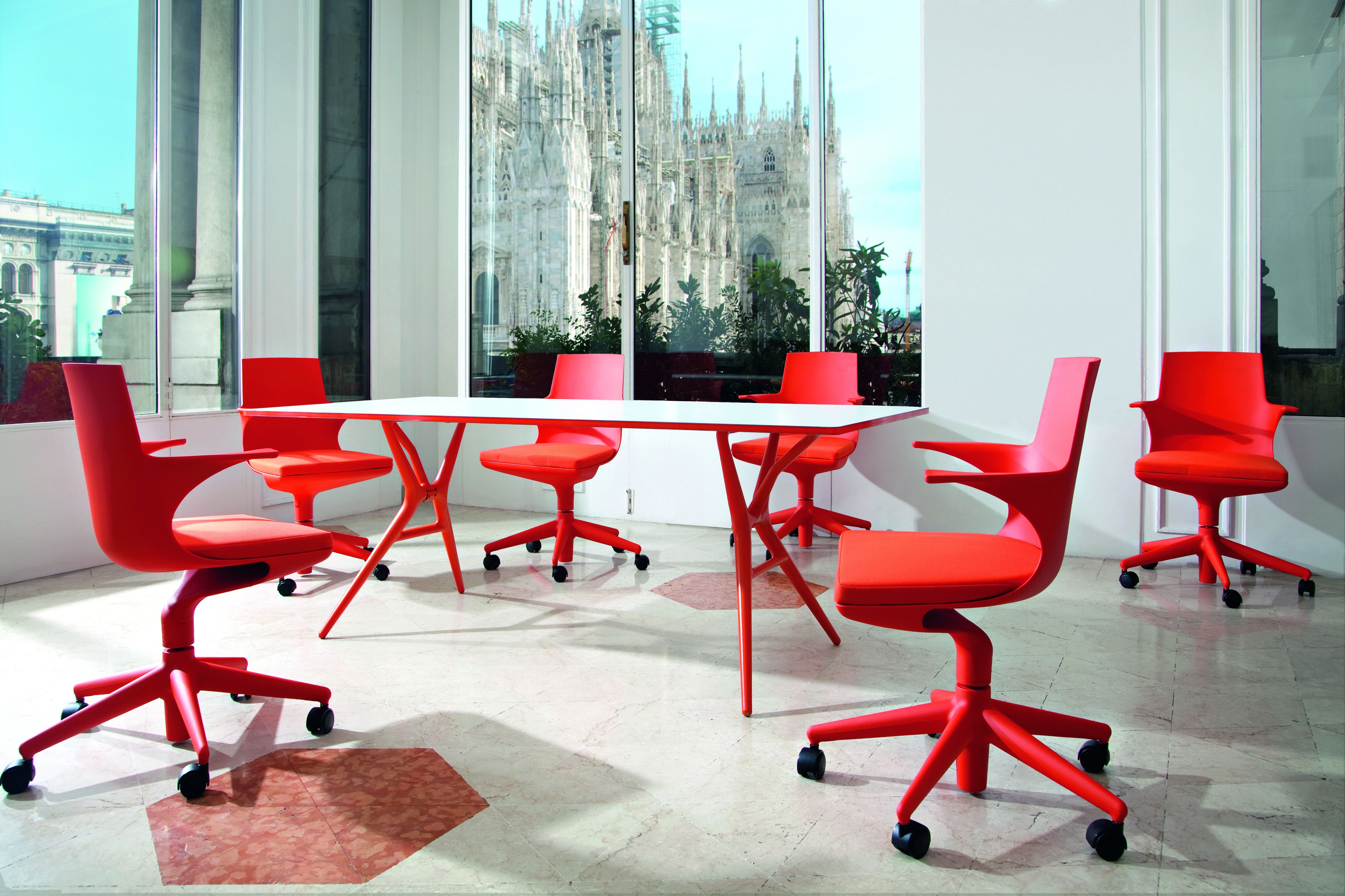 Spoon Table is a light, folding office table characterised by its extreme lightness and practicality, along with the particular design of the legs. The knee closing mechanism, designed to make the table easy to fold, makes Spoon Table perfect when space i