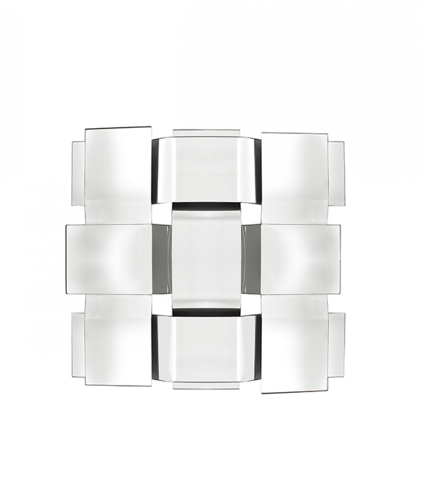 Trama is made of different parts, set one into the other to mimic the art of an ancient wicker basket. Each curve brings your mind back to times filled with craftsmanship, while its light, and the reflections produced by the intertwining mirrors, bring us rapidly to a various and multiform future.